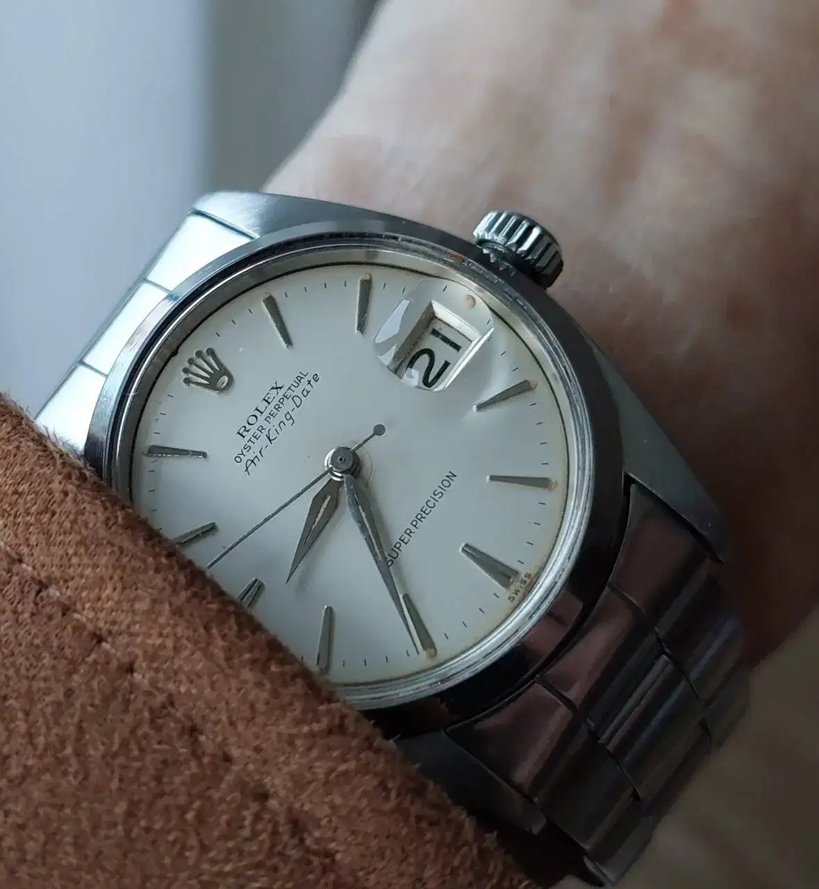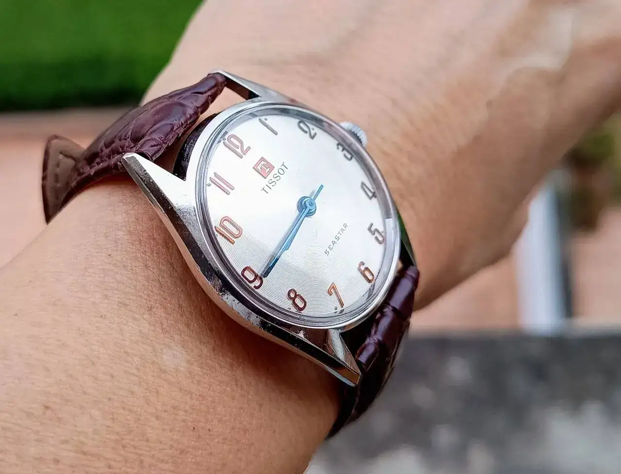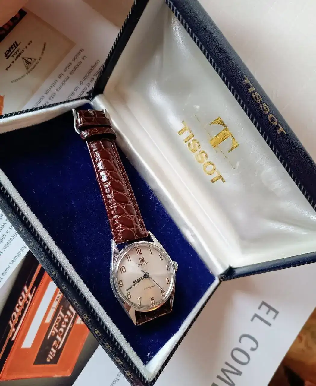 Muy muy bonito¡Buenos días! Hoy un Tissot aparentemente muy sencillo pero con varios detalles que lo hacen muy agradable. Difíciles de captar en foto para mí, pero creo que en la foto de muñeca he logrado que se aprecien un poco el surco concéntrico de la esfera, el rojizo cobreado de los numerales y el afogado azul de las agujas. Al natural da un juego muy bonito la combinación