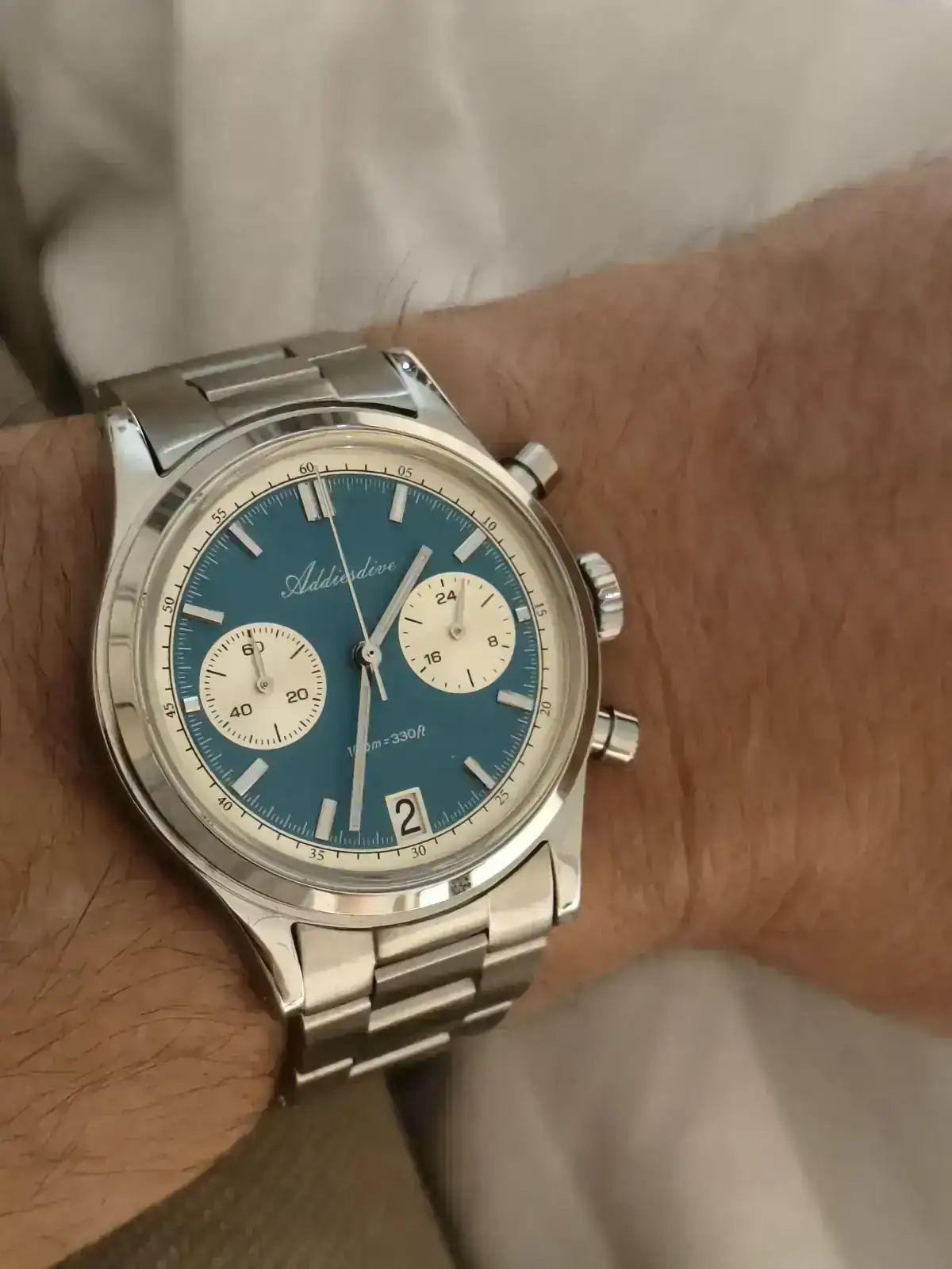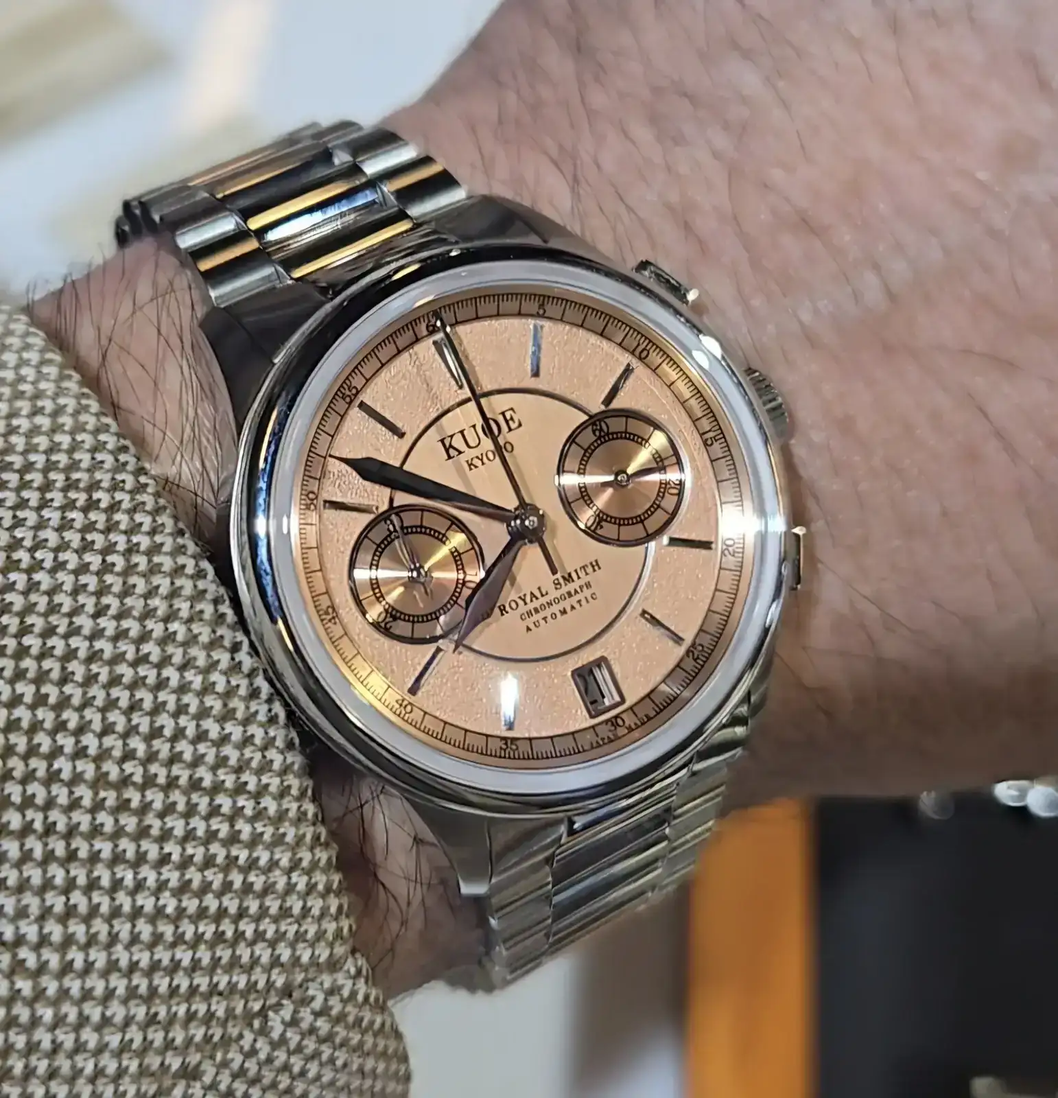 Que bonito, me encanta el estilo.Tuve la oportunidad de probarme el último lanzamiento de KUOE KYOTO, su crono automático, apenas al mercado hace unos pocos días. Un reloj muy bonito. 37 mm y con un calibre TMI NE86A de Seiko. Quería compártirselo.