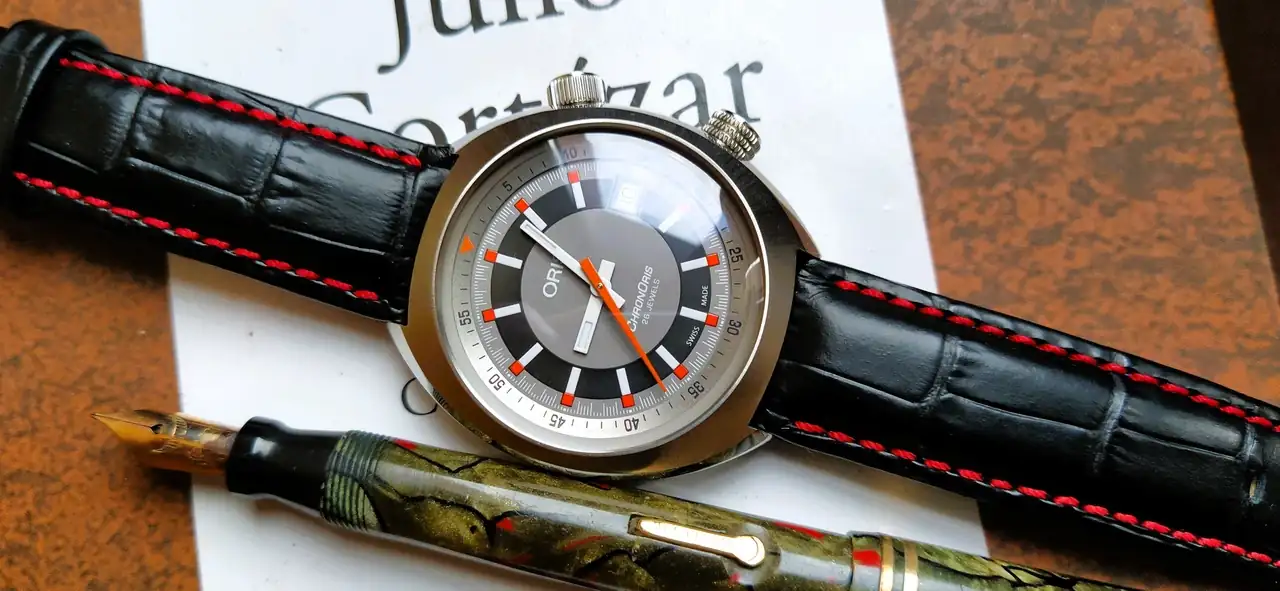 Bonita foto, bonita composición y calidad de escritura, el reloj me gusta mucho.Egun on . Oris Chronoris y Conklin.