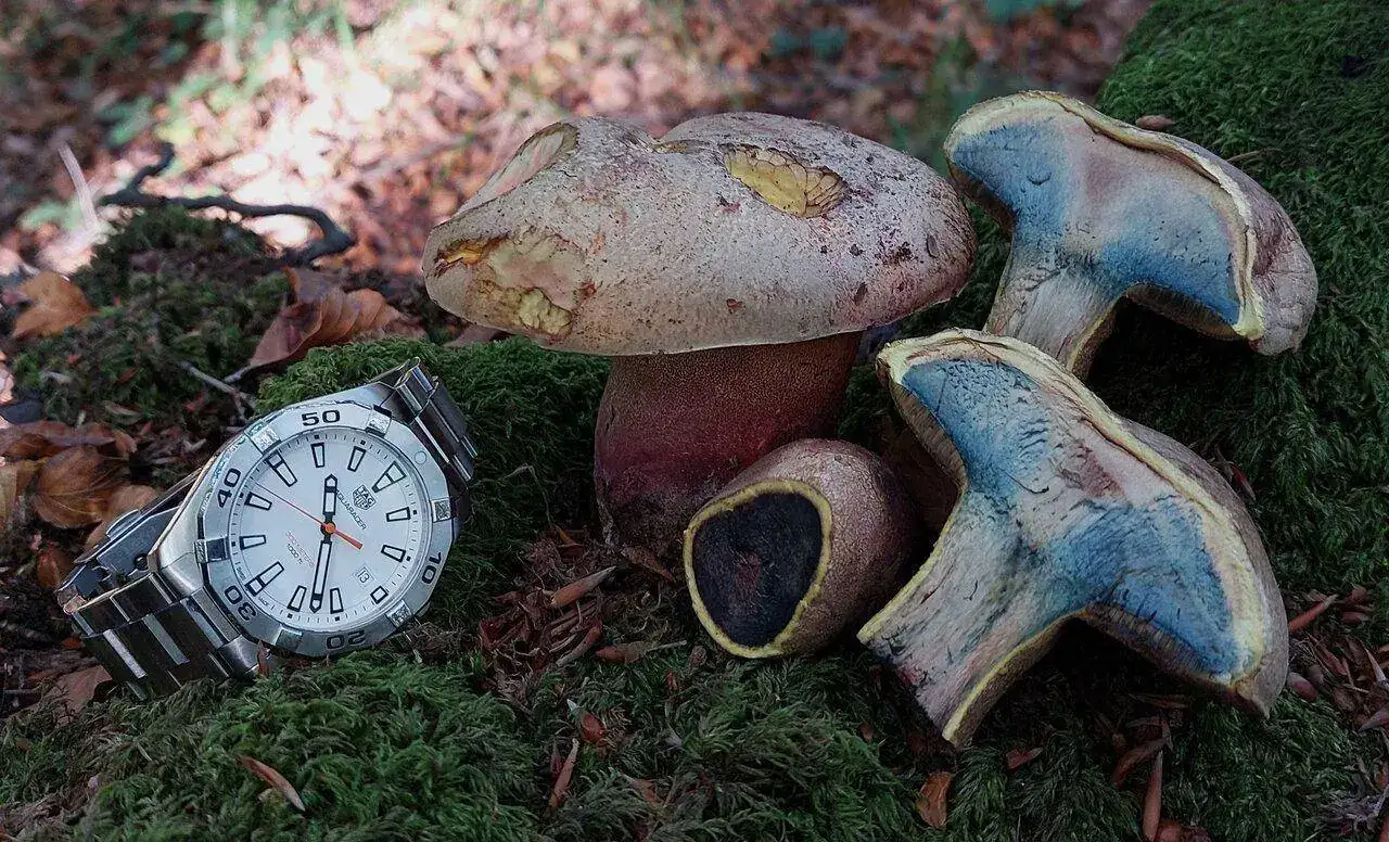 En muchas ocasiones es casi imprescindible para intentar clasificar las especies del complejo grupo de los Boletales cortar algún ejemplar para observar detalles como color de la carne y poros y si son inmutables o viran al oxidarse al poco tiempo como este a colores azulados .