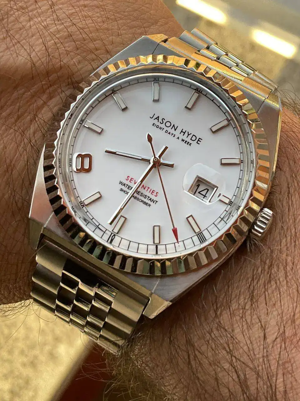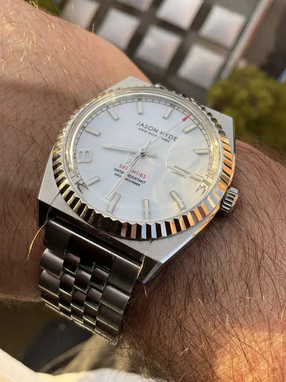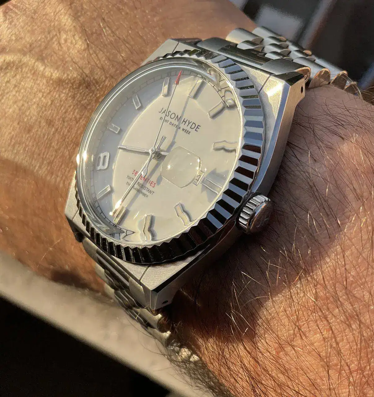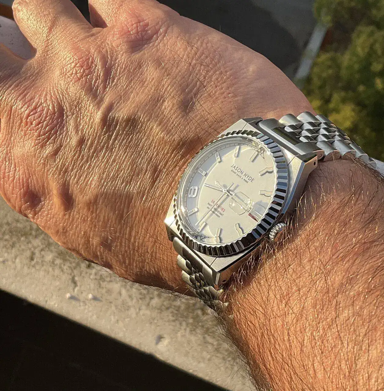 Fresca,por ahora,mañana.Al pulso un polivalente que me tiene loco,por su esfera,caja,cristal,y el jubilee que le puse.