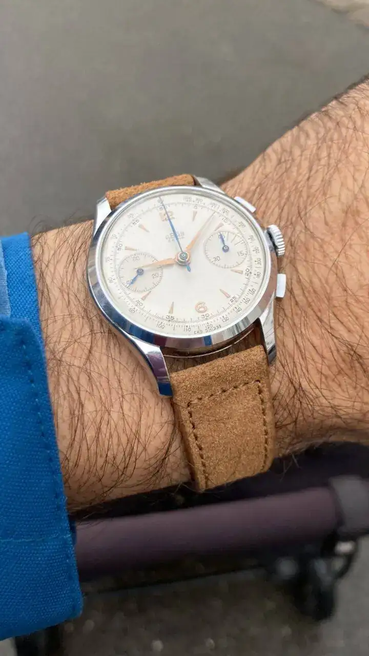 Precioso crono.Para hoy este chaval de principios de los 50 con Valjoux 22, con menos de 10 puestas, y todas hechas por mi