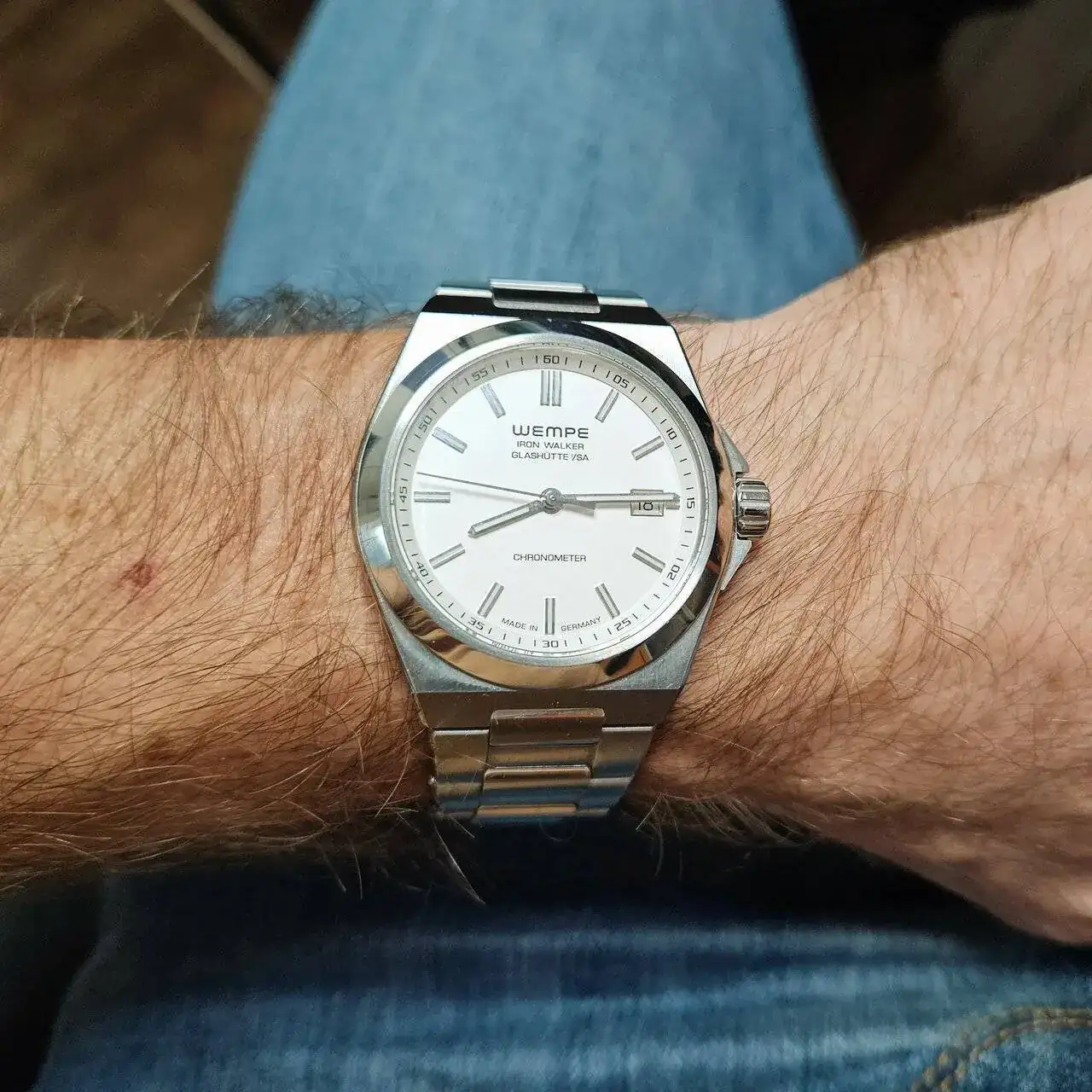 Este modelo está logradísimo. Recuerda ligeramente a los VacheronSigo con los brazaletes integrados y el estilo Genta. Wempe Iron Walker.