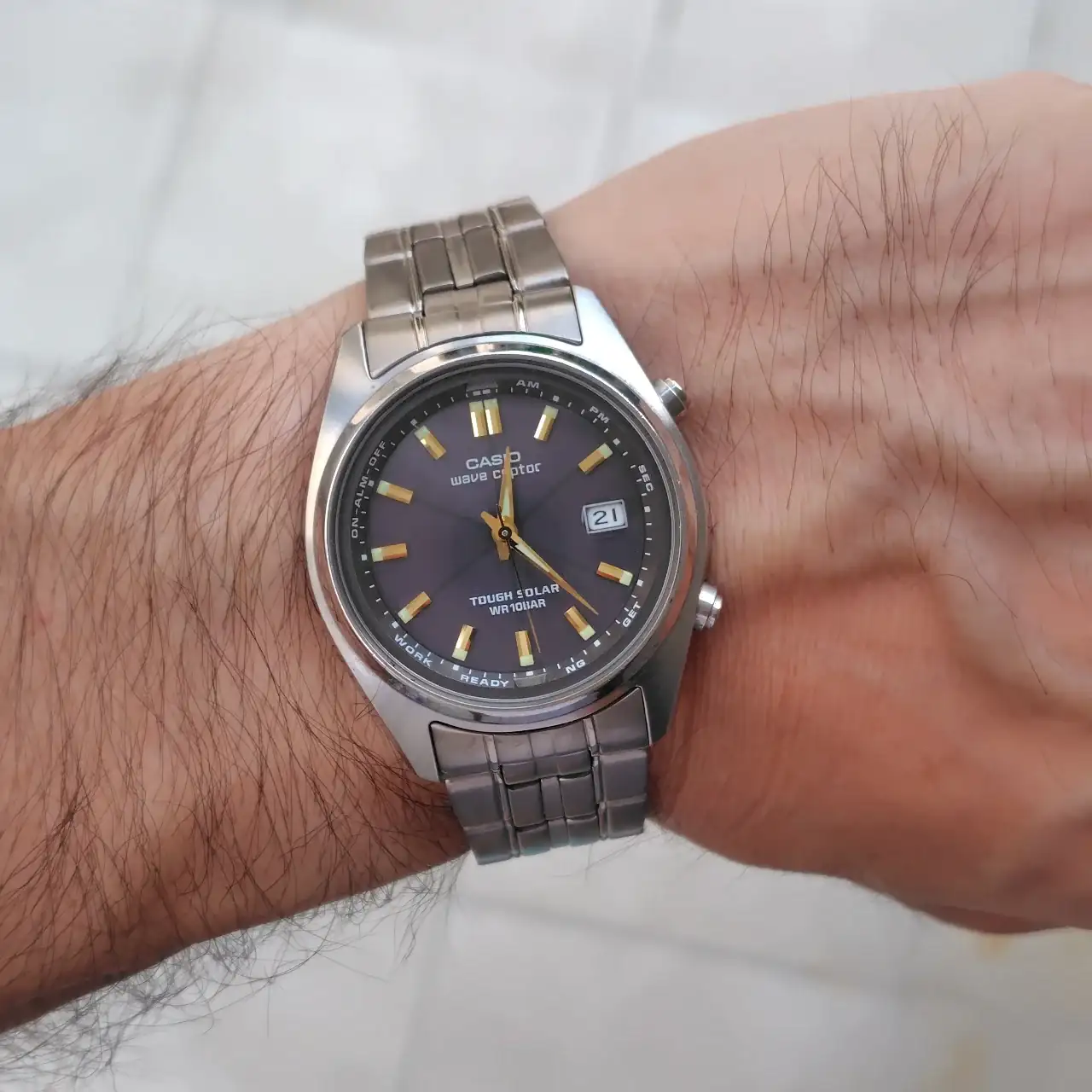 Acabo de recibirlo. 900 yenes en yahoo auctions, el único pardillo que pujó y me costó lo mismo que los gastos de envío. 10 eurazos puesto en casa! Uno de los relojes más elegantes de Casio en mi opinión, como nuevo sin un solo arañazo. Cristal impoluto!!! Doy saltos de alegría.