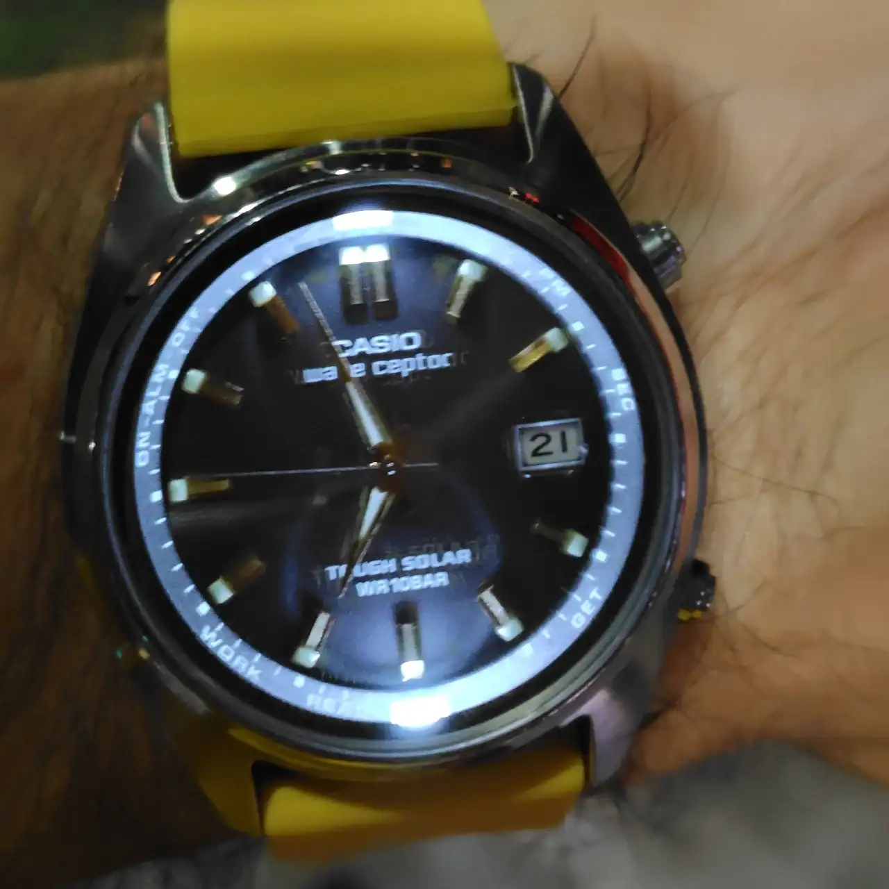 Solar, radio controlado, alarma, 10 ATM, y una iluminación y lumen espectaculares. Lo malo que es cristal que se raya con mirarlo, pero le he puesto un protector 9H