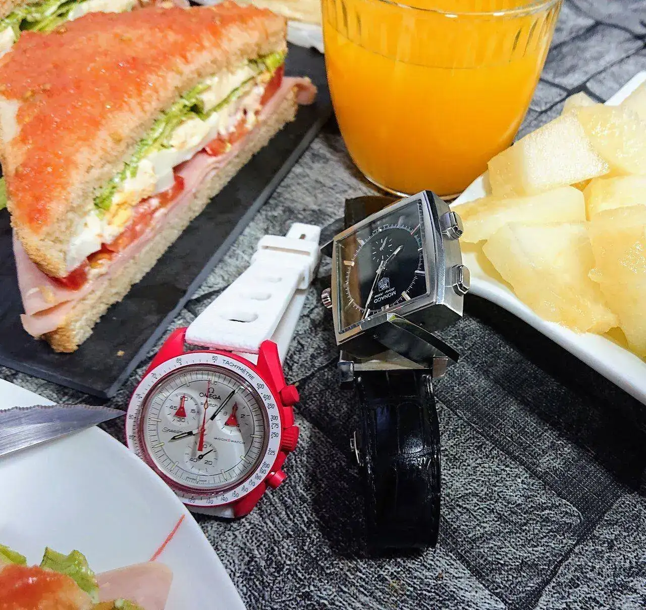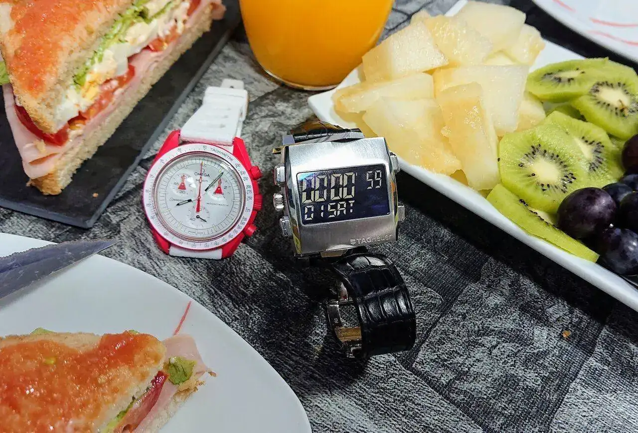 Tissot crono ayer y Omega rojo hoy (creo recordar). Grandes relojes.