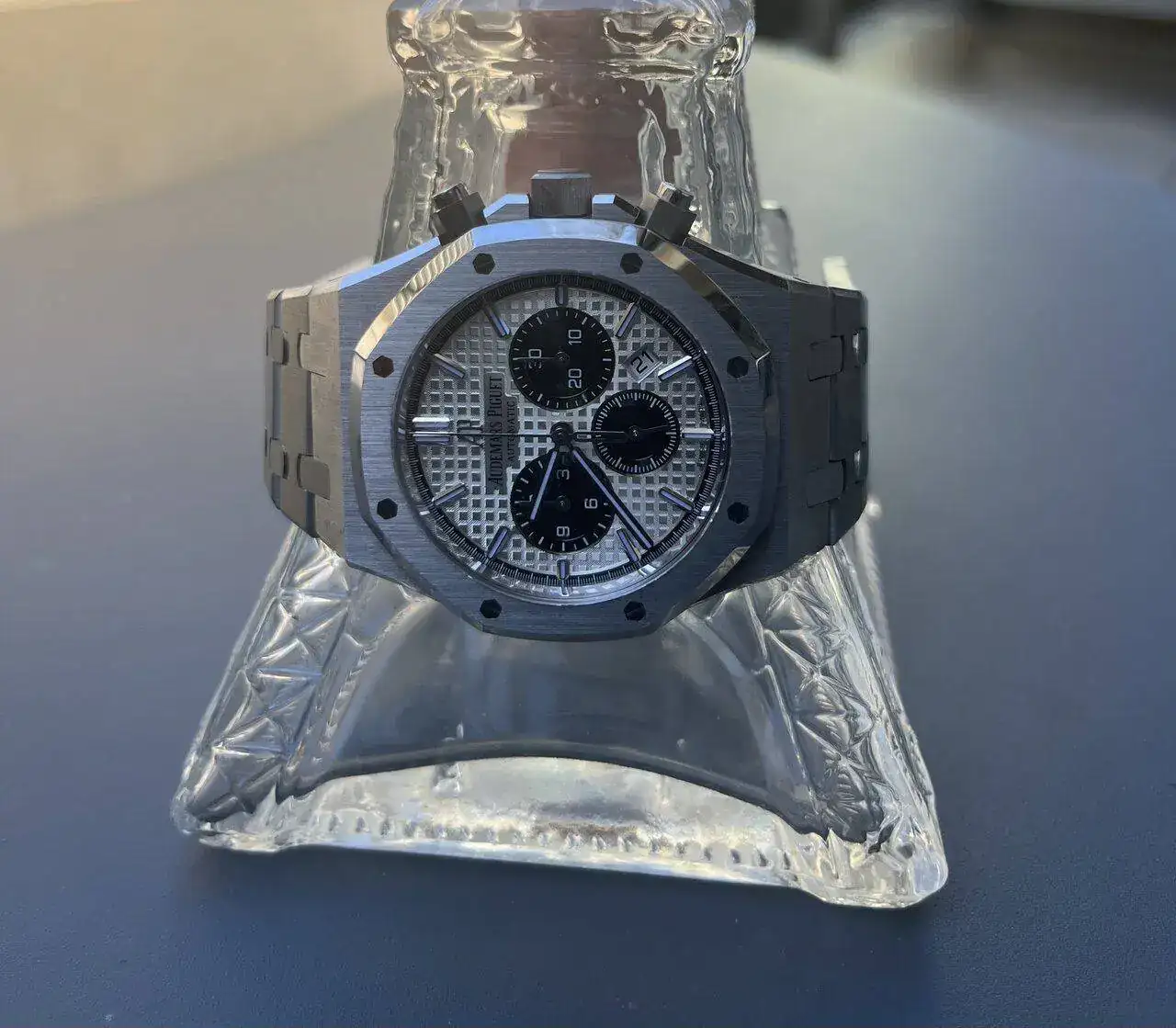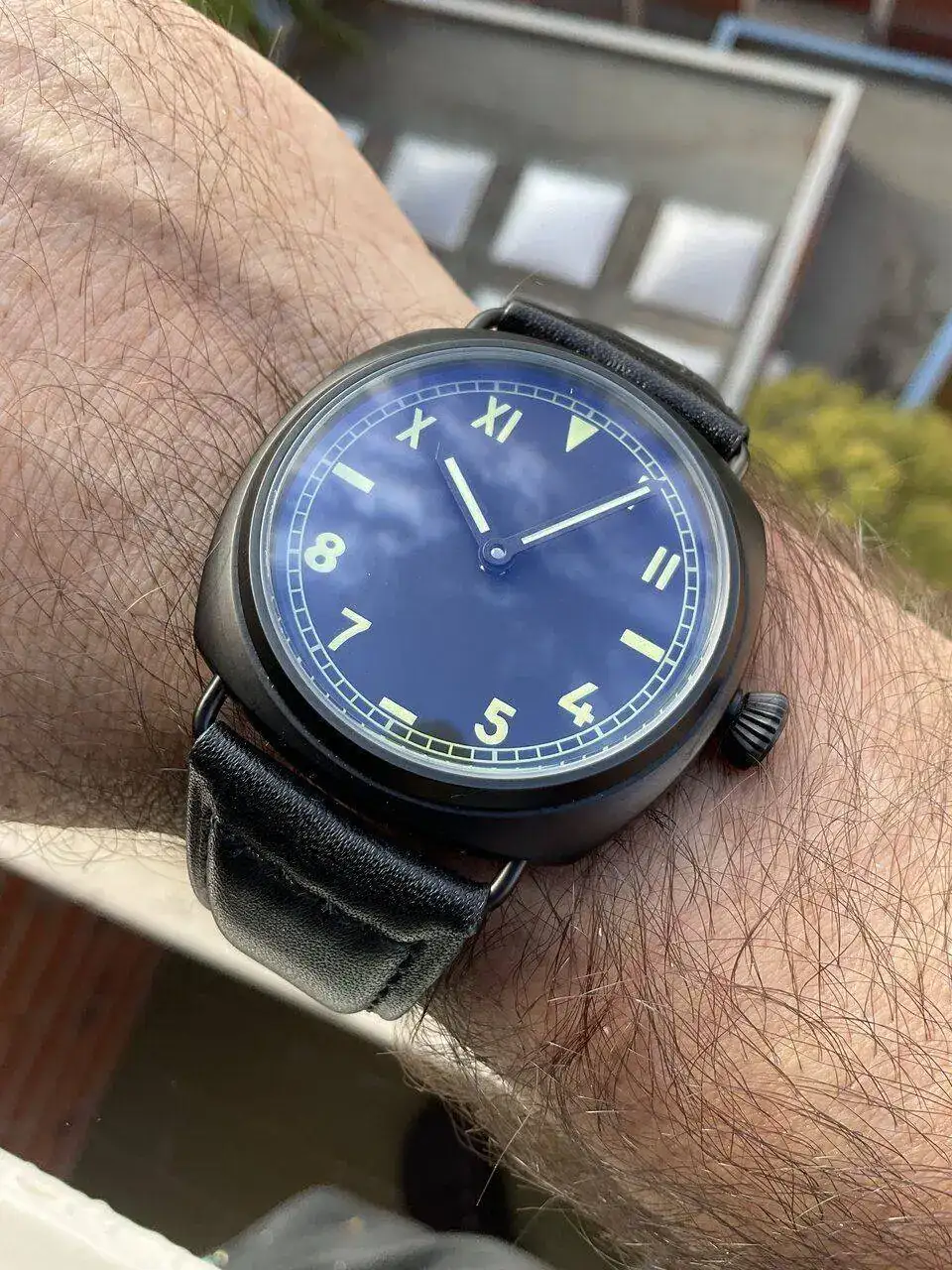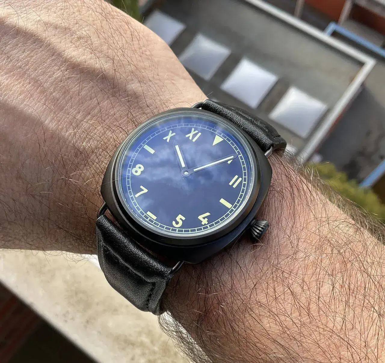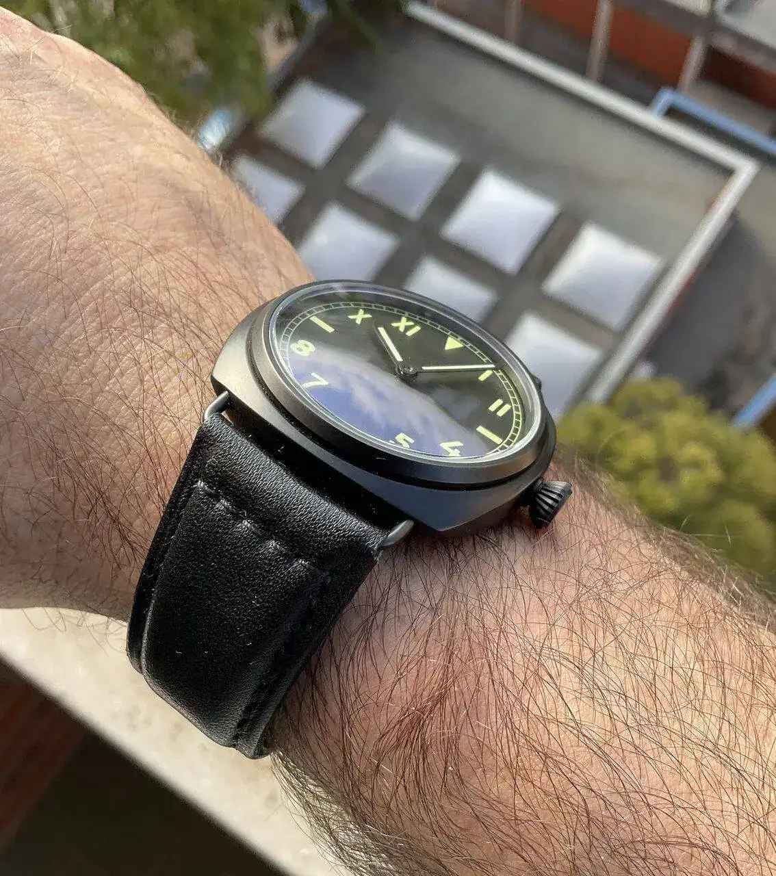 Nubes en el cielo.Negro y sin tratamiento antireflejos,como antaño.Rigurosa cuerda manual por supuesto