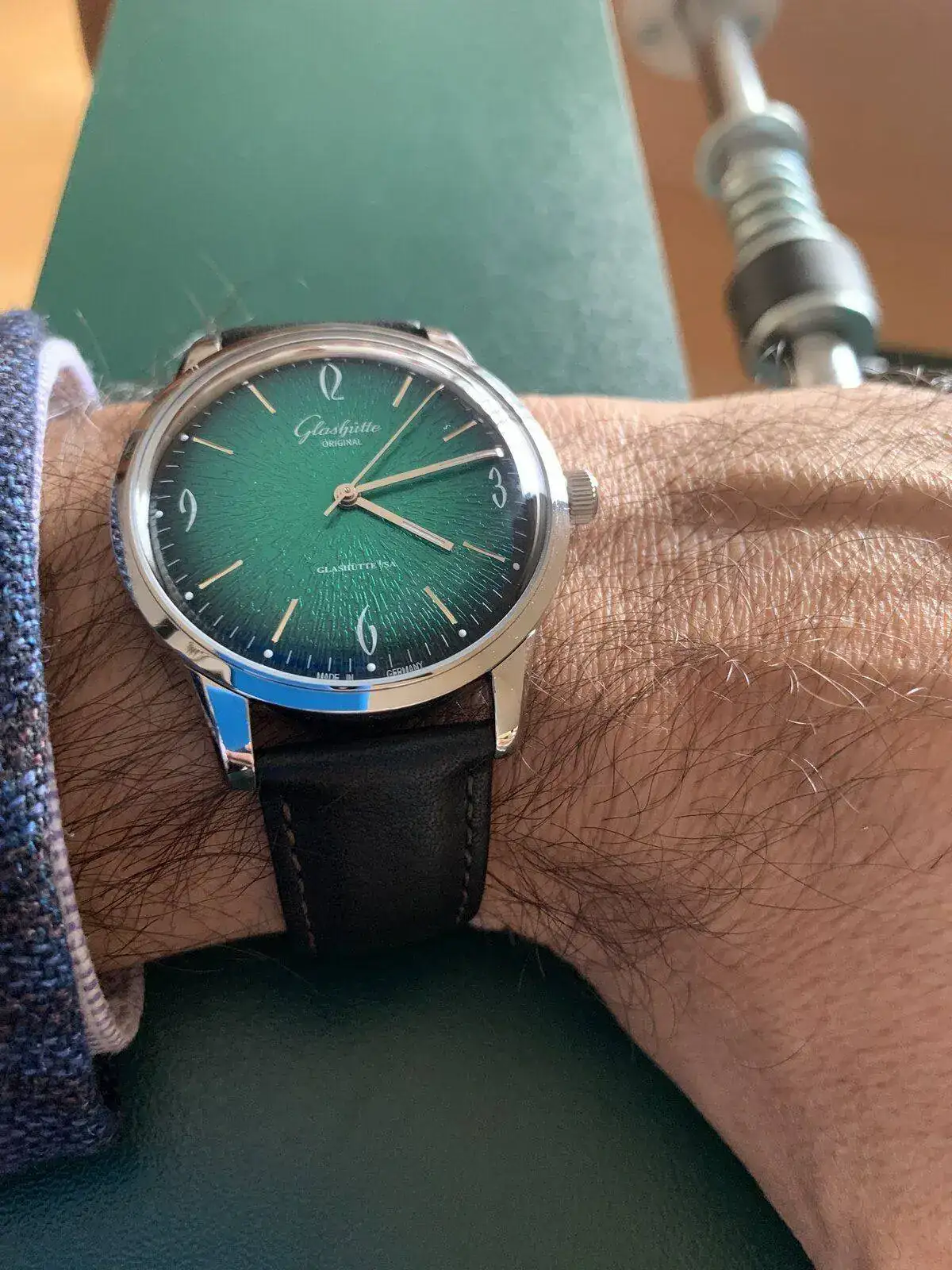 Me encanta. Atemporal y elegante a partes iguales. La esfera verde fumé con ese acabado le da un desenfado tremendo.