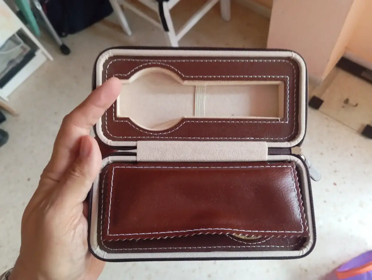 Y el regalo de Navidad de mi hija: Una caja de transporte de relojes para viajes de dos piezas, cabanillazeada.