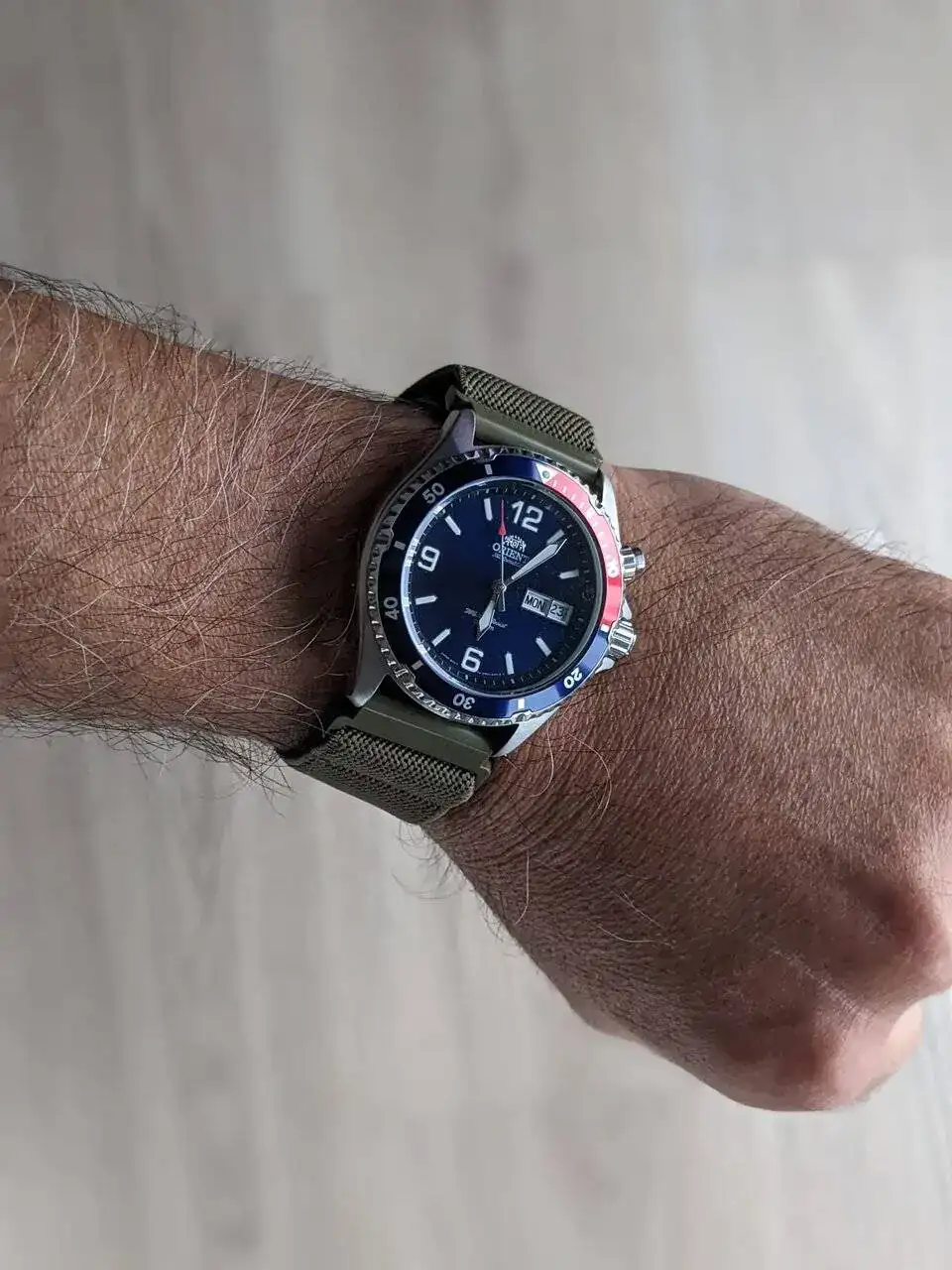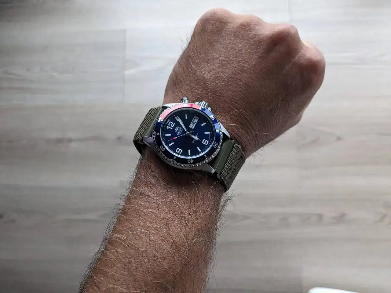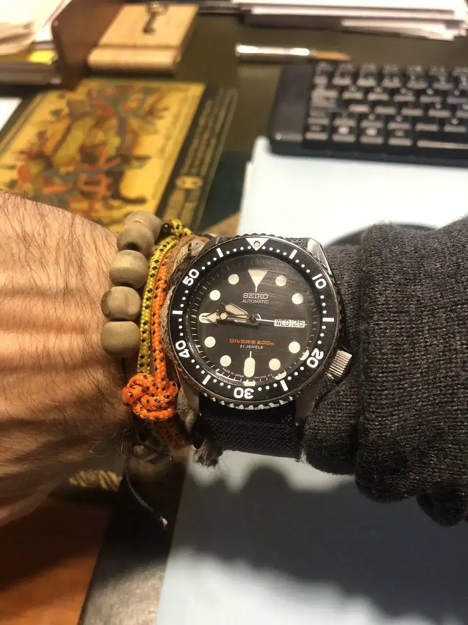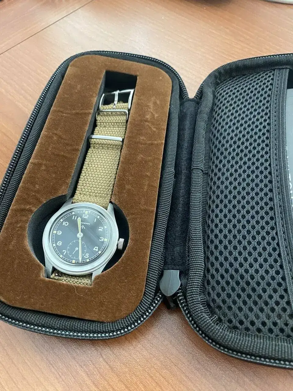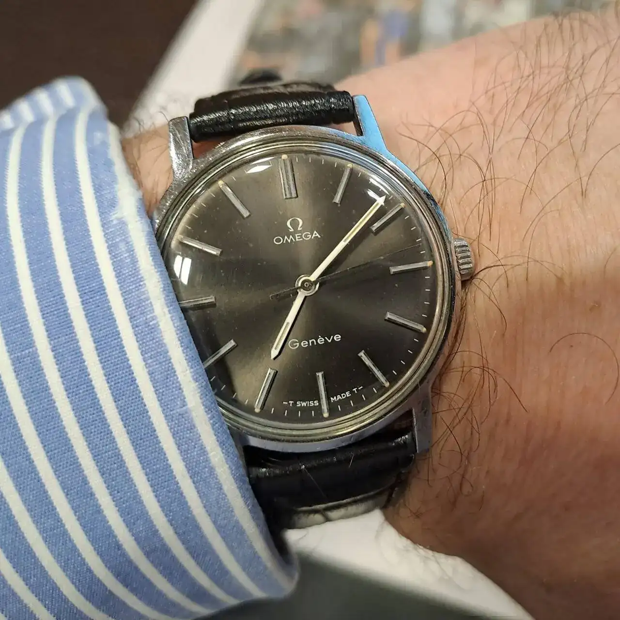 Hoy salí de mi casa con el firme propósito de publicarlo para venderlo ya que quiero disminuir el numero de relojes en mi colección. Hasta lo traje a la oficina con su caja y papeles. Pero luego de mirarlo me fue imposible. Creo que se queda