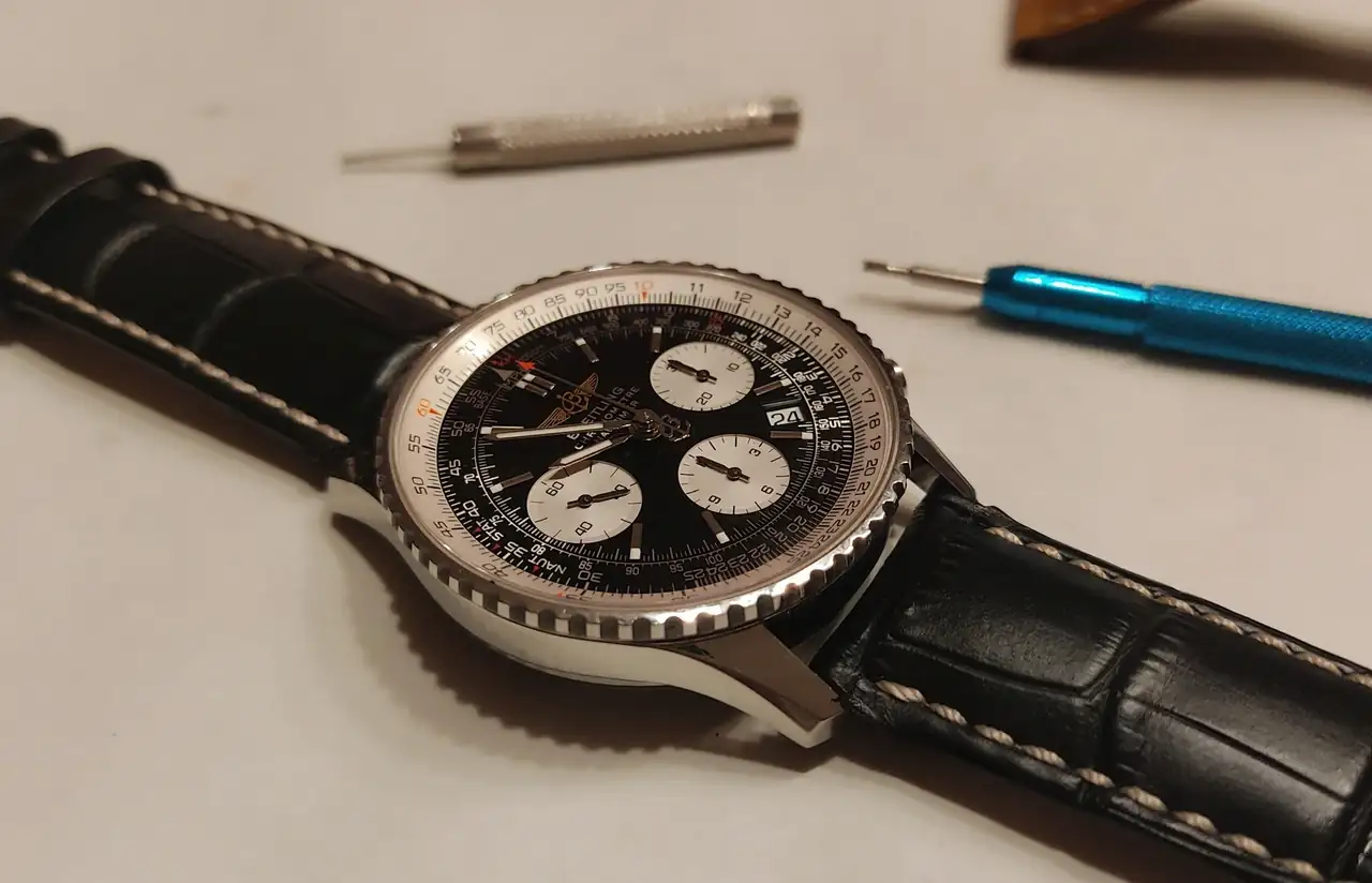 En efecto. Esta correa negra le queda fantástica.Aunque pienso que a este reloj le sientan bien varias opciones de correa, el negro es la mejor.