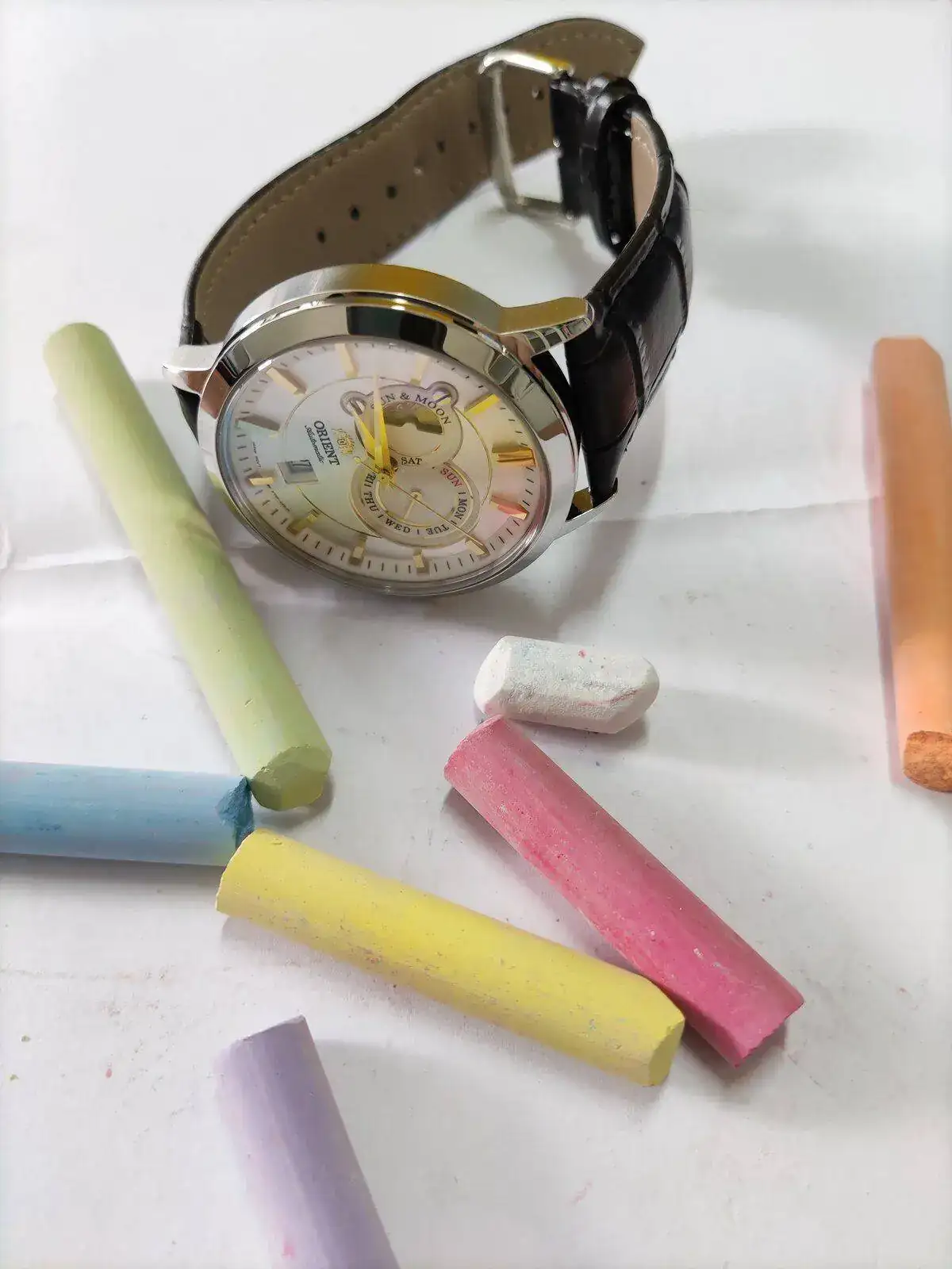 Un precioso Orient Sun&Moon y una excelente composición. Qué recuerdos los que pintamos canas (en el poco pelo que nos queda), jeje.