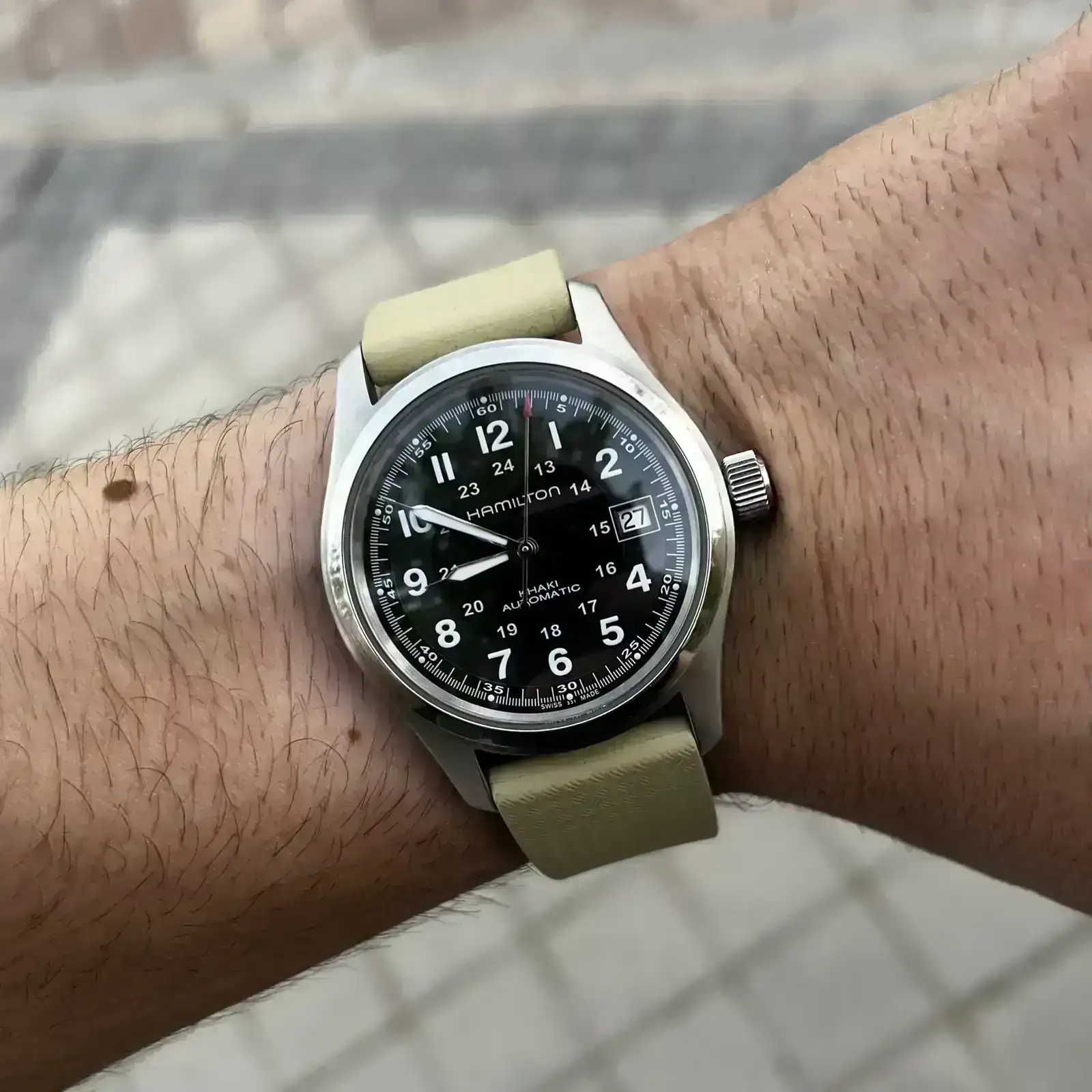 Hay que reconocer que el contraste cuesta un poco, al menos para mí.Buenos días 🍍. De nuevo con el Hamilton pero todavía no estoy seguro de si esta correa me gusta o no. Tengo sentimientos encontrados con ella.