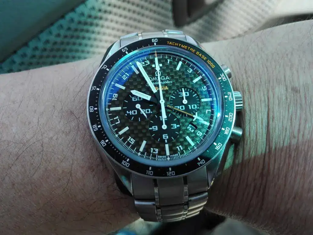 Y no puedo por menos que rendir mi pequeño tributo al éxito de esta empresa llevando hoy mi Omega Speedmaster HB-SIA Co-Axial GMT Chronograph el cual, aún no siendo solar, tampoco contamina.