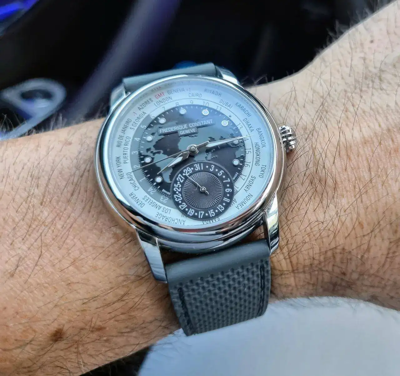 Este reloj desde que lo vi por primera vez en el escaparate de una joyería, era capaz de dar la vuelta para verlo. Luego se me pasó el bluf pero reconozco que es de los pocos que siempre me han gustado, el que yo veía era azul🤩🤩. Preciosa piezaHoy con el viajero de la caja.