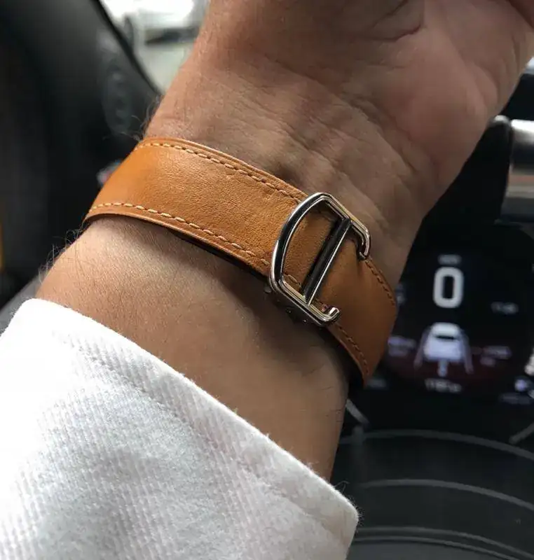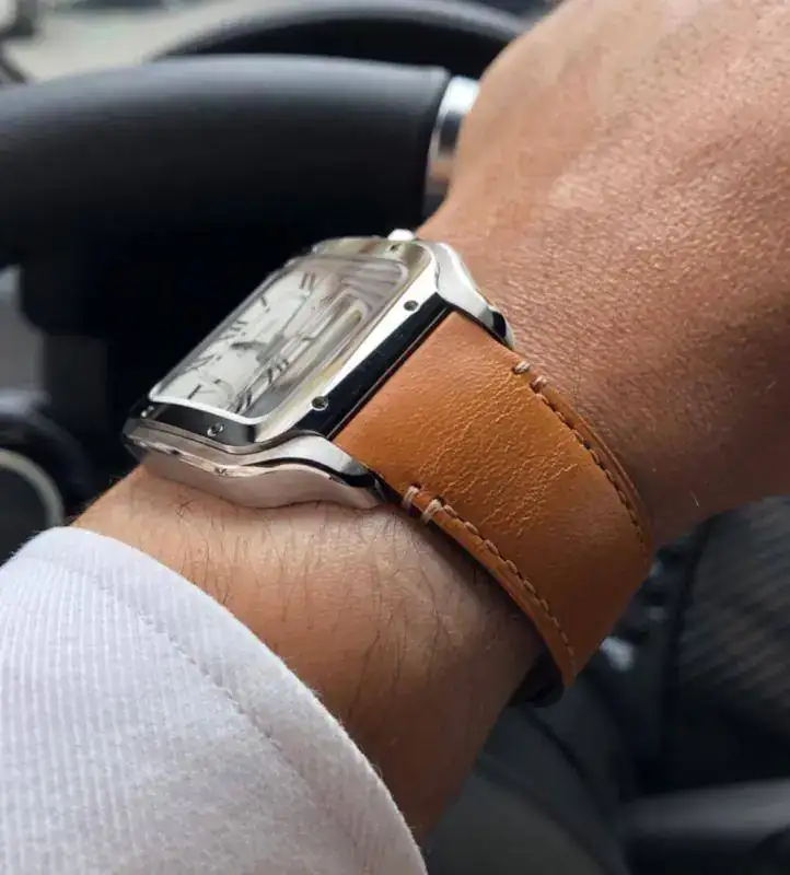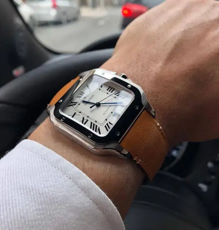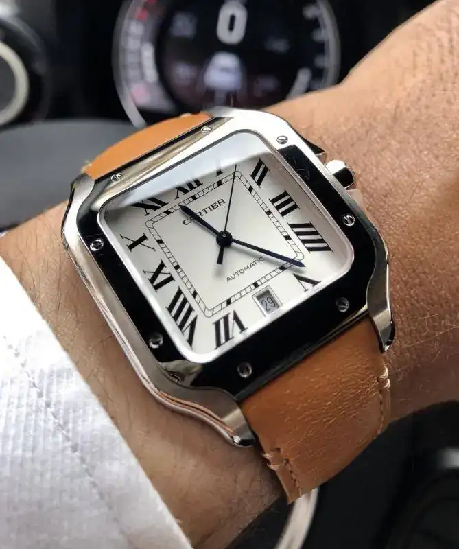 Hoy Cartier Santos 2018, sustituyendo el brazalete de acero por la correa de cuero de dotación.