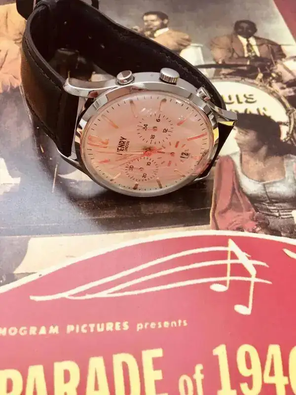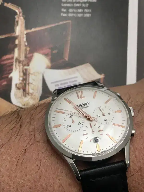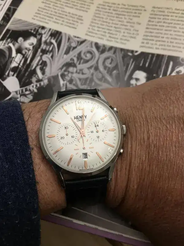 Aprovecho el hilo diario para mostrar mi nuevo recién llegado, un Henry London con aires vintage que me tiene cautivado. Esfera color champagne, cristal abombado, crono, muy ligero y con una correa de piel extremadamente suave y cómoda. Os dejo unas fotos y feliz día.