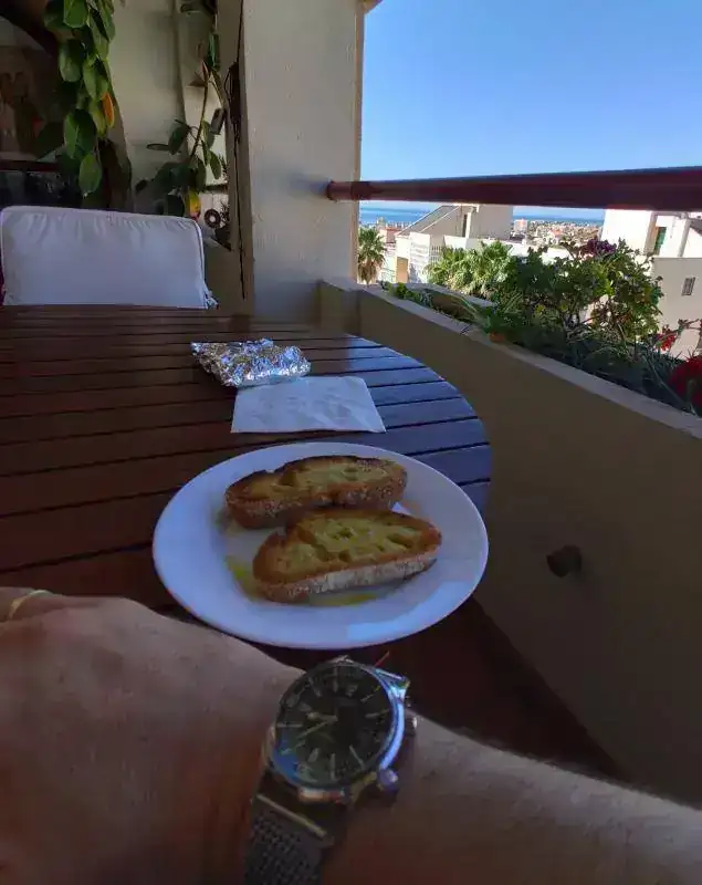 Buen provechoMe incorporo tarde, cosas del curro. La verdad es que fuera de esta excepcionalidad, he salido ganando en el lugar donde tomo el desayuno comparado con el minúsculo estar de la oficina que además da a un callejón.