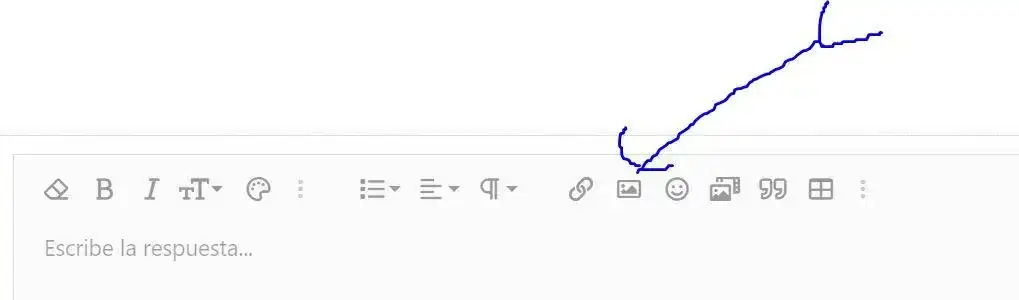 En la barra que aparece encima de "escriba su respuesta". Es como un cuadro chiquito.Que emoticono? No me sale nada de eso. Ver el archivos adjunto 923563