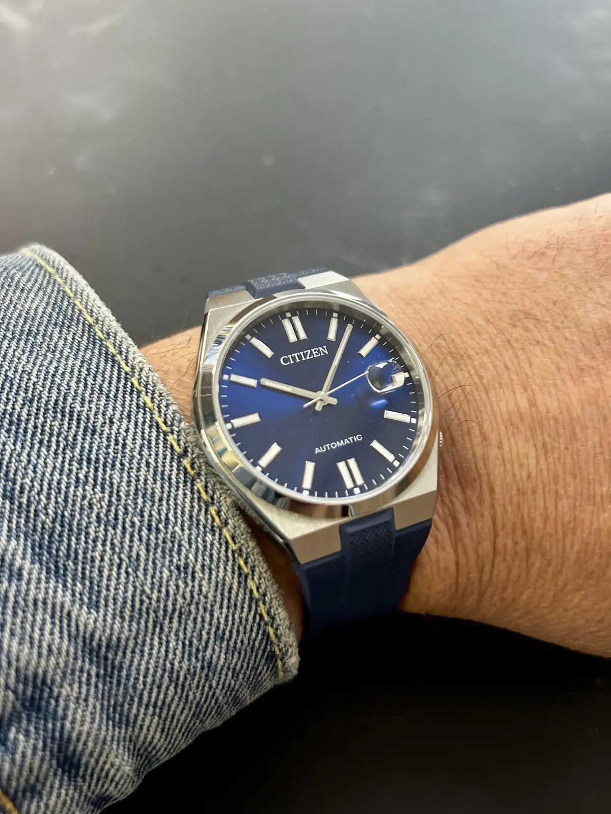 Al verlo he tenido la sensación de ver un reloj completamente diferente con el caucho azul marino y viéndolo creo que me gusta más que con el brazalete de acero 👍