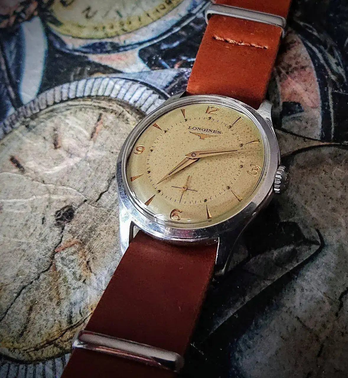 Preciosa pátina. Indices excavados? Quiere decir que los índices están por debajo del plano de la esfera? Cómo si se hundieran en ella??¡Buenos días! Hoy este cálido Longines, del cual me gustan especialmente sus índices excavados, además de su pátina, claro