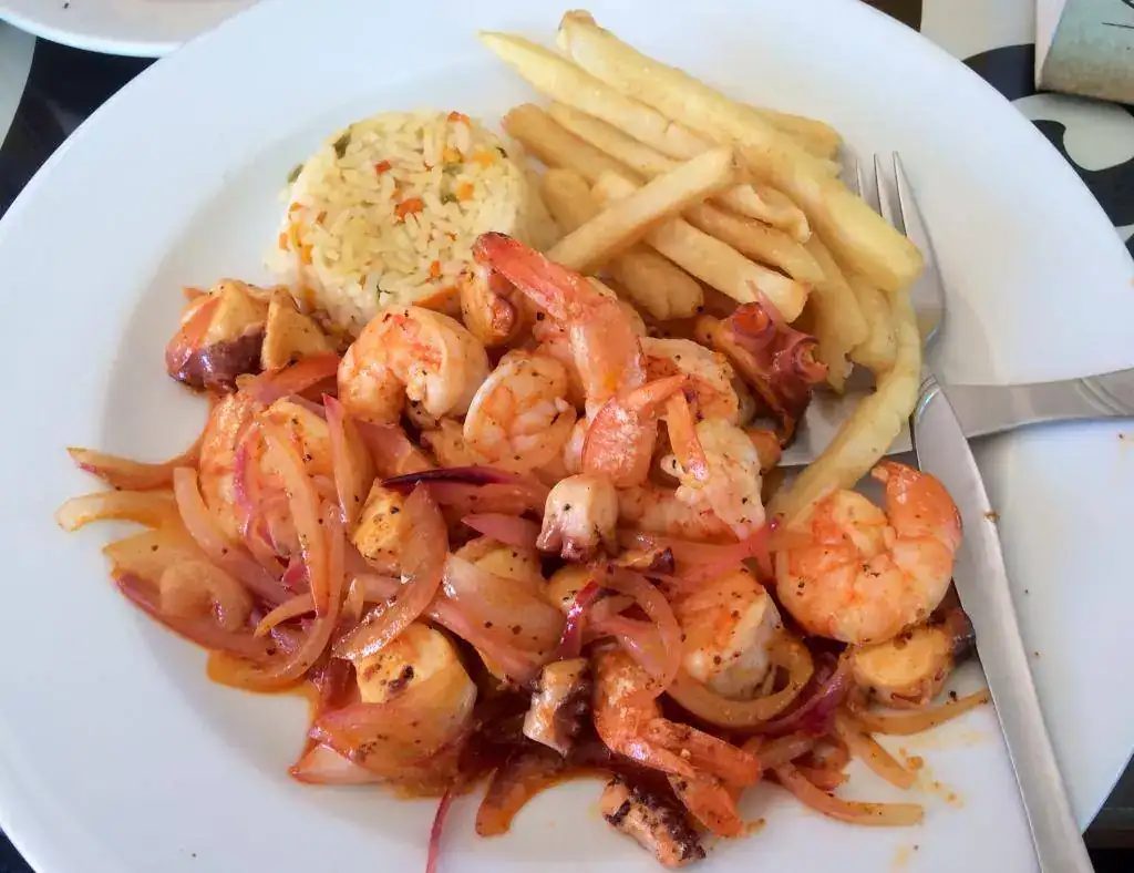 Para terminar pulpo y camaron en salsa cora.