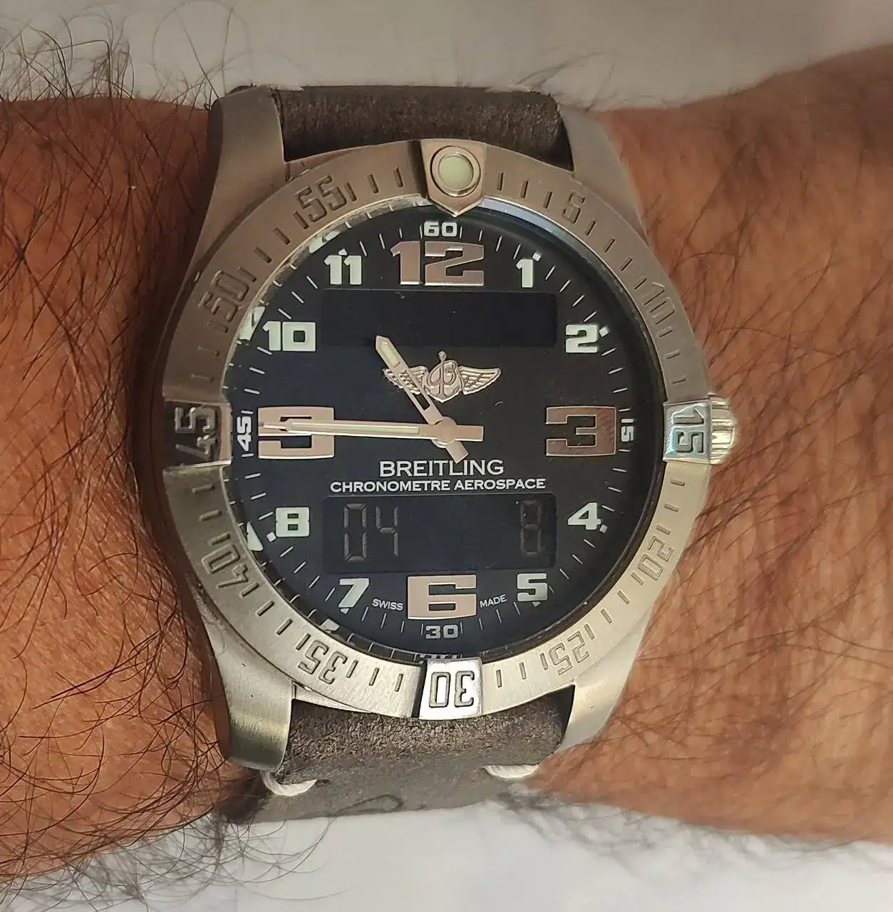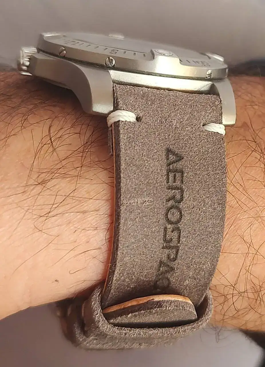 Realmente bien le queda.El Aerospace con correa nueva, realizada por el compañero Zero. Creo que le queda bien