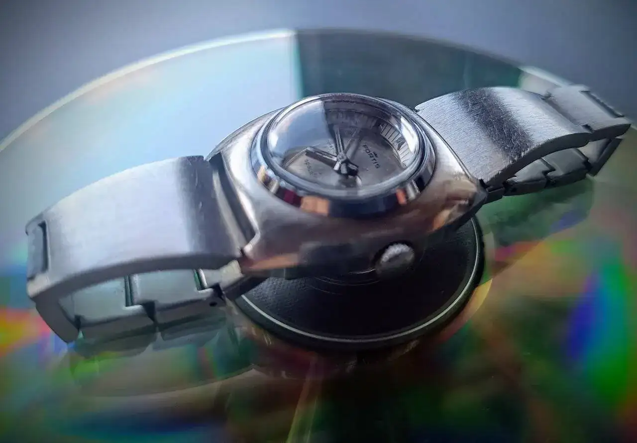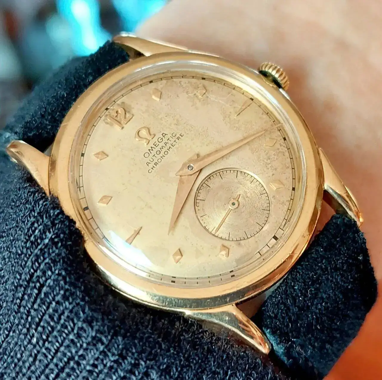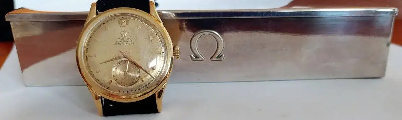 La esfera, agujas, corona y pasadores son de oro; a la esfera se le ha caido parte del zapon, tal vez intentáron limpiarlaaún así en la muñeca apenas se nota