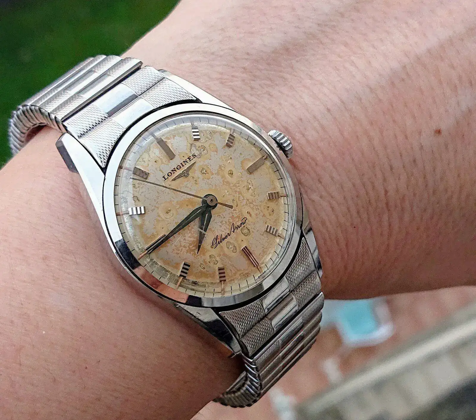 ¡Buenos días! Silver Arrow con esfera muy trallada tropicalizada :D Lo importante es que a mí me encanta :pardon:Y su brazalete extensible me chifla 🥰
