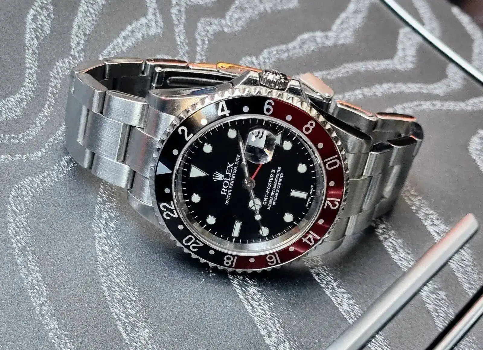 Precioso y único este bísel "pepsi" del GMT-MasterSigo con el corazón divido, apuesto todo al rojo o al negro 🎲??