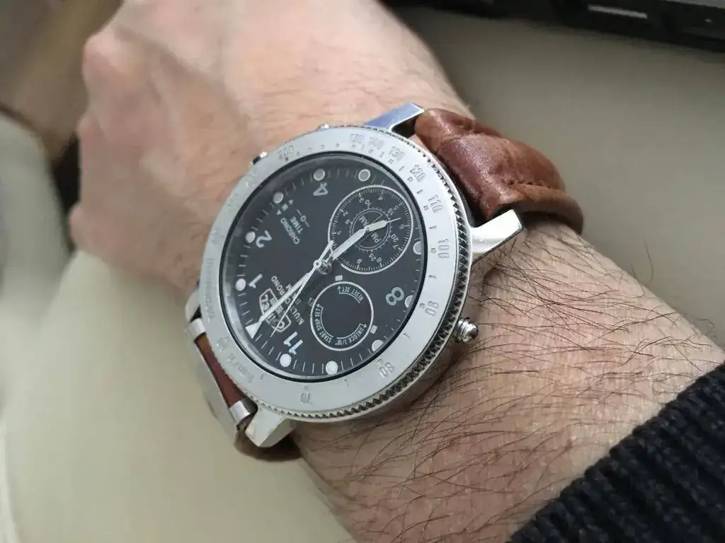 Pues hoy llevo este humilde reloj que me acompañó durante mi juventud y que ha vuelto a la vida hace unas semanas después de unos años en el cajón.