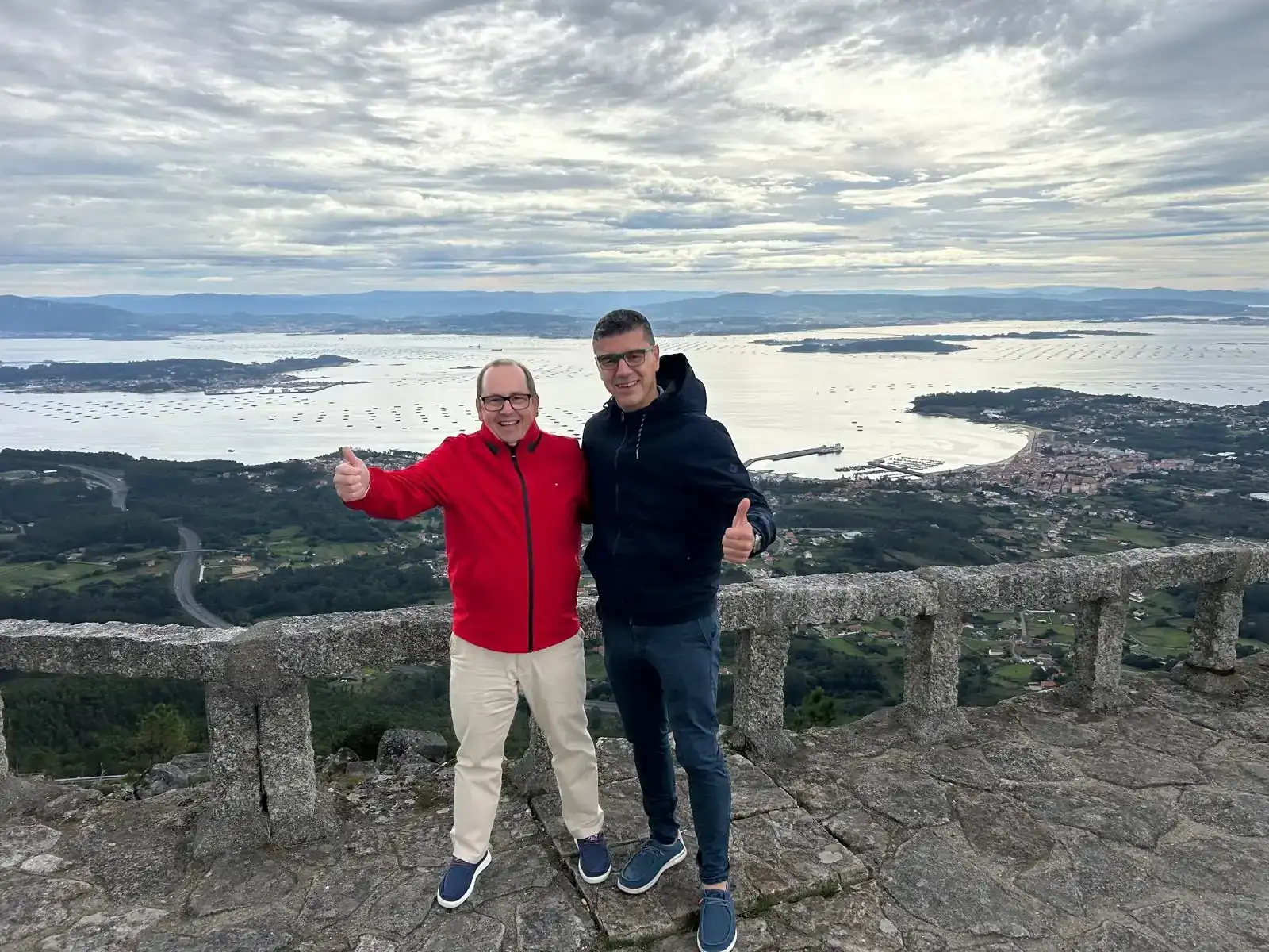 El caso es que llegamos un pelín retrasados respecto al grupo, pero bueno, enseguida, a golpe de teléfono, el gran Roberto, @xarope5 , nos indicó donde estaba el grueso de la expedición: ni más ni menos que en el precioso Mirador De A Curota, así que hasta allí nos dirigimos.