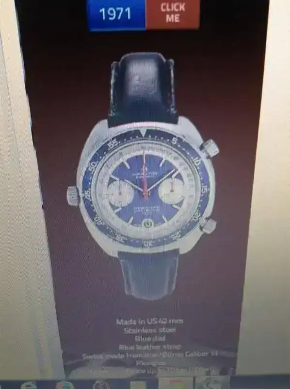 Hola compañeros , bueno estéticamente no difiere mucho del original de 1971 la corona estaba a las 9 y ahora a las 3 , la ventana del dietario era redonda y ahora es cuadrada y la subesfera a las 9 marca los segundos y antes creo que marcaba hasta 12 horas no estoy muy seguro , buscando un poco de información en internet el original de 1971 es un 42 mm calibre Hamilton/buren calibre 11 y llevaba plexiglas además de ser un 10 bar de resistencia al agua y el fabricado en 2011 es un 45 mm calibre hamilton h31 con 60 horas de reserva de marcha , cristal de zafiro y 10 bares de resistencia al agua además de llevar corona roscada dato que desconozco del original