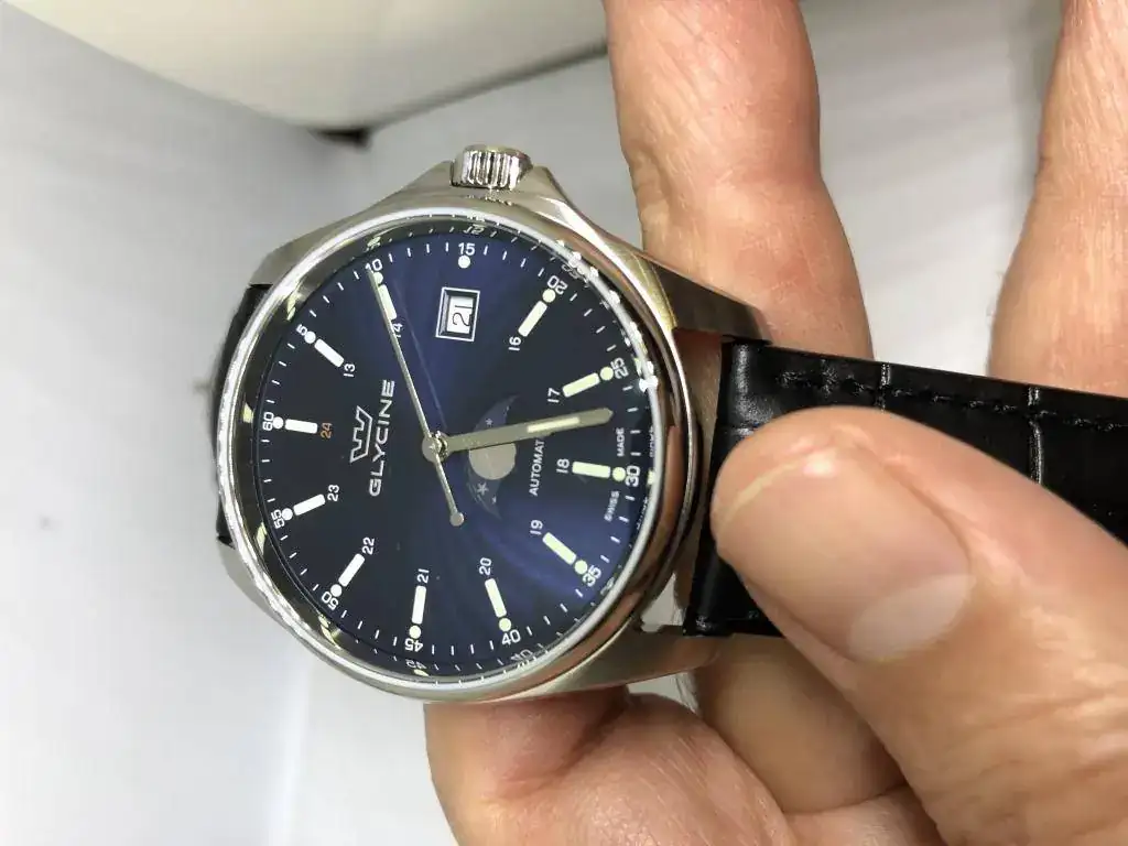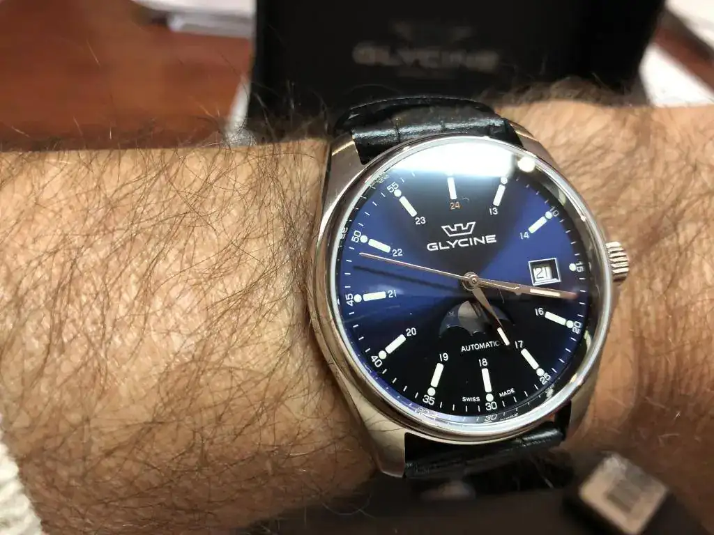 Hola aficionados a la relojería, os muestro videos de mi último reloj, un Glycine Combat con fases lunares, recién adquirido. Lleva un calibre Sellita 280, 28.800 alternancias, y me gusta mucho la facilidad de ajustar la fase lunar que se hace desde la propia corona.