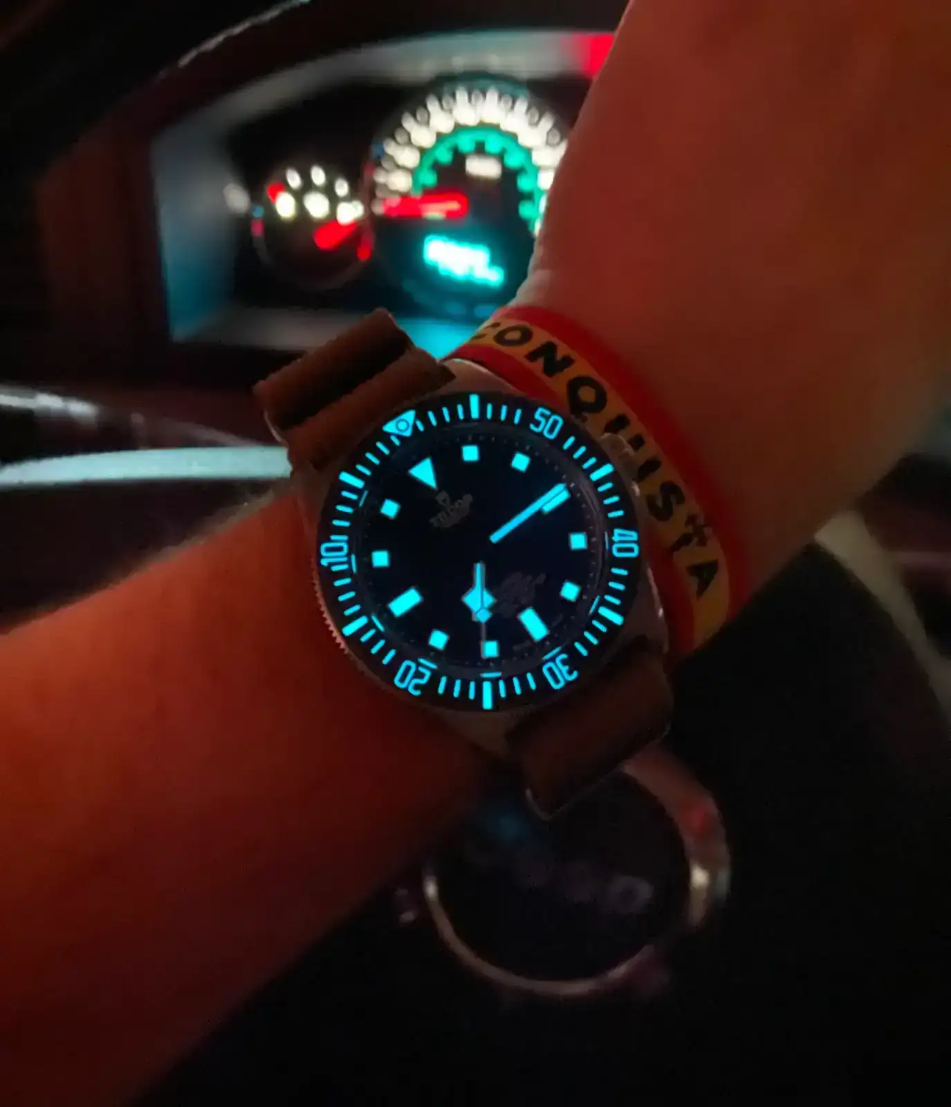 Digo reloj especial, porque aunque yo buscaba un nuevo daily, el reloj me resulta muy especial por varios motivos, y va a usarse menos de daily de lo que pretendía. Las razones que lo hacen especial para mí (la pieza en sí misma ya es especial por sus características, grabado y limitada producción), son: 1) la más importante, quería un reloj para conmemorar el nacimiento de mi primer hijo en 2024, por lo que era relevante que fuera un MN 24, y llevara grabado el año de su nacimiento (pienso legárselo tras disfrutarlo, dios mediante, muchos años); 2) el reloj es azul, y hace que me recuerde los profundos ojos azules de mi hijo; 3) el reloj tiene el bisel “invertido”/regresivo, y mi hijo venía de nalgas🤣; 4) no tenía ningún reloj azul en mi colección, y en cambio, mi primer reloj automático fue un mako azul (que ya no conservo); 5) el primer reloj “bueno” que tuve de niño/adolescente, fue un viceroy de titanio, por lo que tanto este punto como el anterior, me recuerda los orígenes y evolución de mi vida y mi afición.