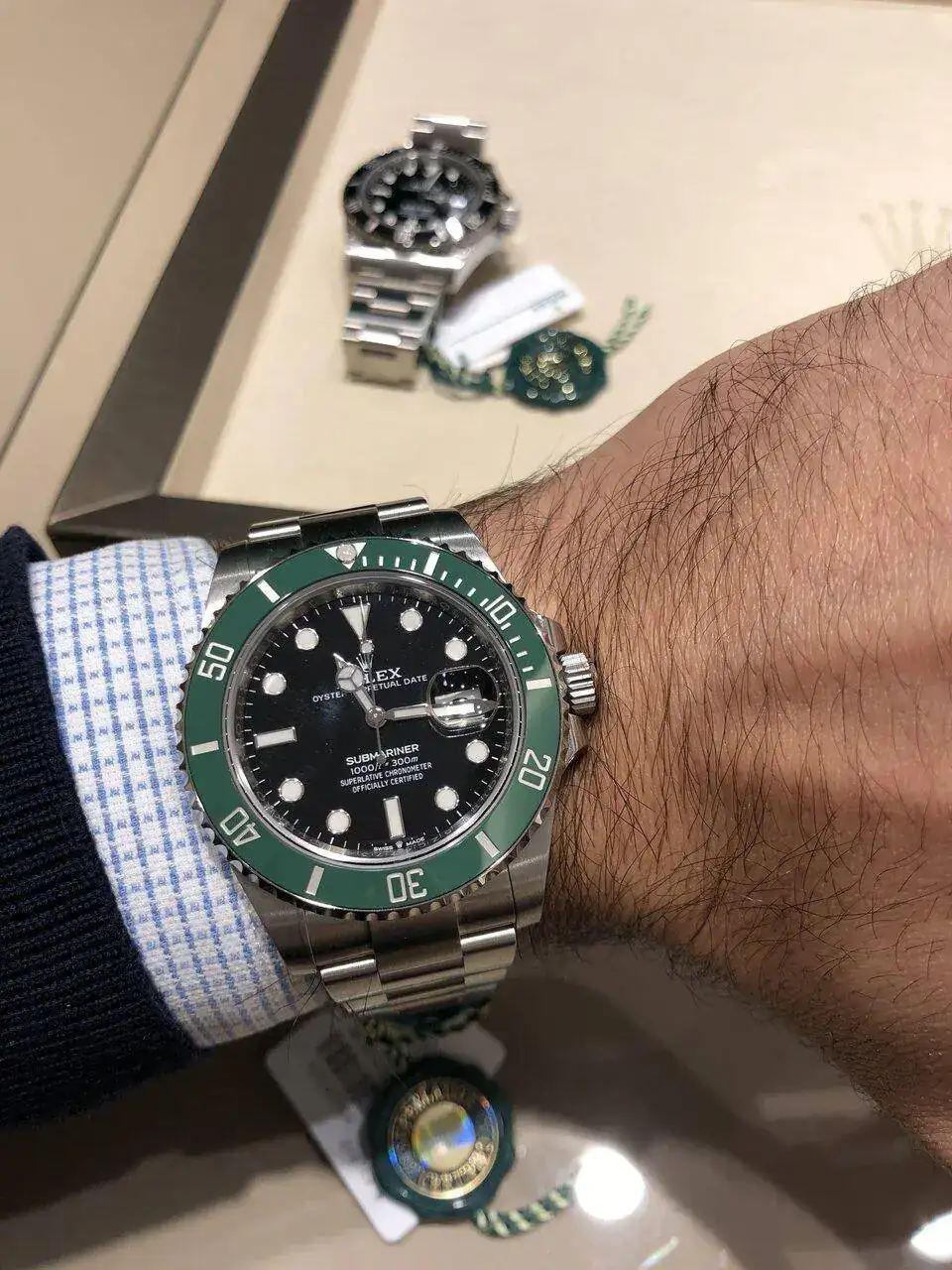 Precioso!!! Como dicen por aquí según la luz en alguna foto parece el verde del MK1 ... yo seguiré esperando... que pronto llevaré un año de espera... como se suele decir estoy pasando por todos los estados de ánimo a lo largo de esta laaaaarga espera 🤣 Enhorabuena!! Brutal!Buenas tardes! Hoy porfin he podido recoger este bonito reloj, Rolex Submariner “starbucks”.
