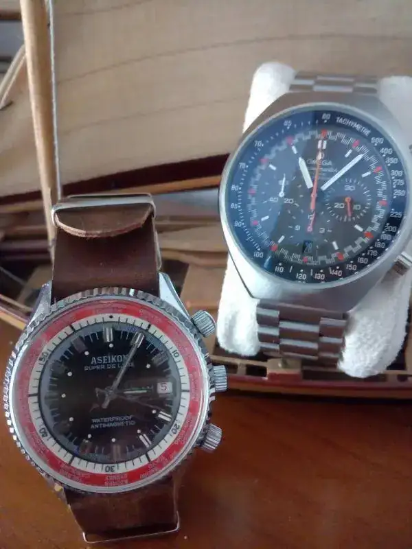Vamos que eran fakes con movimientos de origen suizo que copiaban relojes japoneses, una combinación de factores digna de estudio.Como ya te ha comentado Joler se trataba de relojes de calidad media que se construían con el único fin de retirarles a posteriori las letras sobrantes y ser vendidos como supuestos Seiko, una marca que en la época se valoraba bastante bien. De hecho creo que la mayoría eran decomisados y destruidos por las fuerzas de seguridad, así que consérvalo que seguramente encuentres pocos como él.