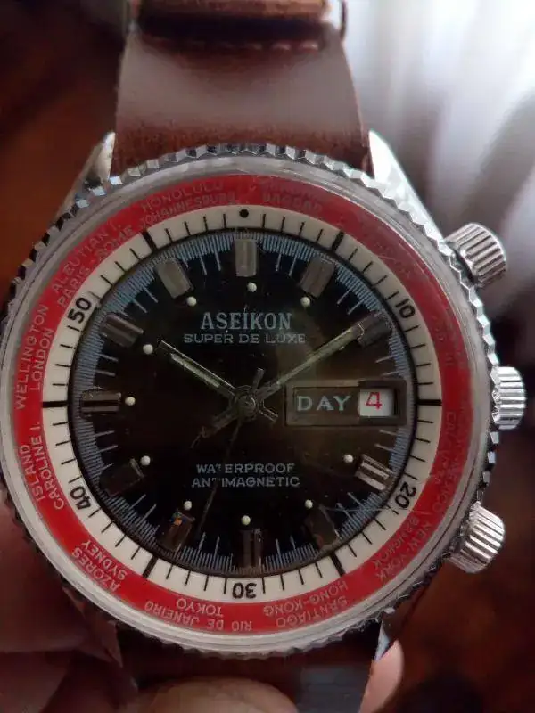 Aseikon en un homenaje de la época a los Seiko. Casualmente, o no, a veces perdían la primera y la última letra y pasaban del homenaje al fake en un periquete.