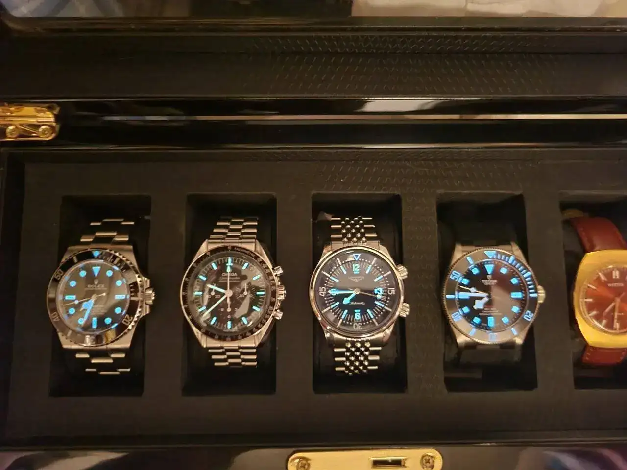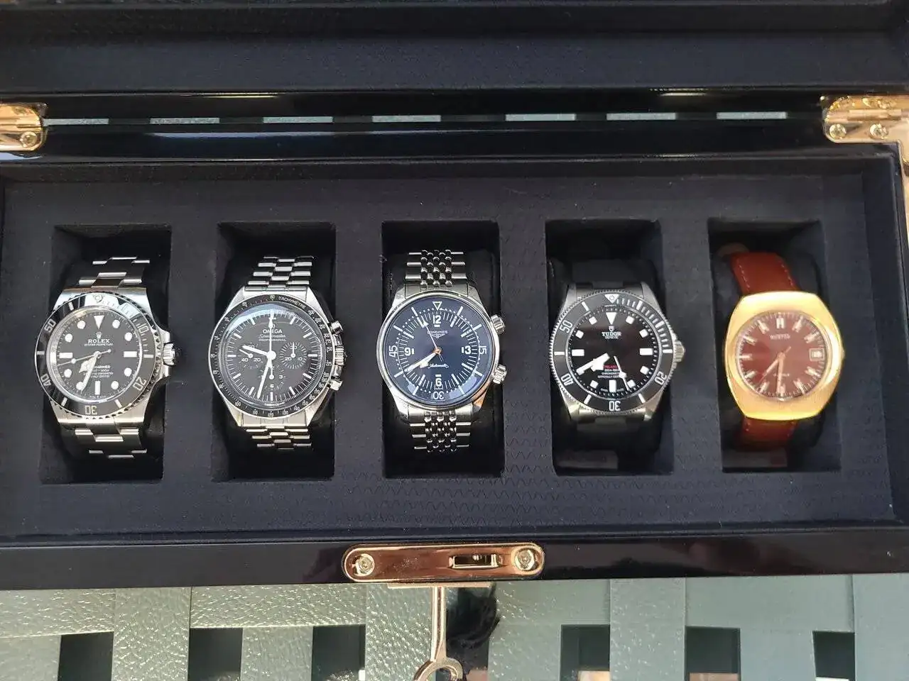 Hola amigos, hoy me levanté contemplando mis "nenes" y quería compartir con ustedes mí nómina actual 😉 Rolex Submariner, Omega Speedmaster Professional, Longines Legend yTudor Pelagos. De "suplente" el primer reloj que tuve en mi vida hace ya 45 años, un Wostok de la época soviética. Saludos a todos.