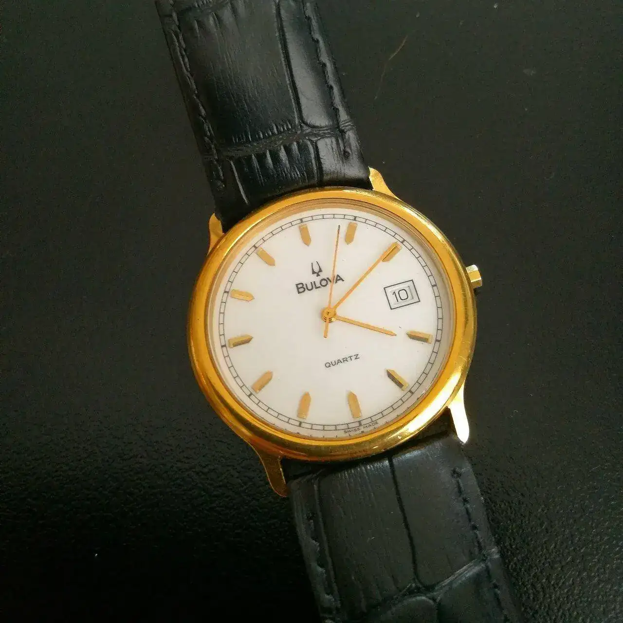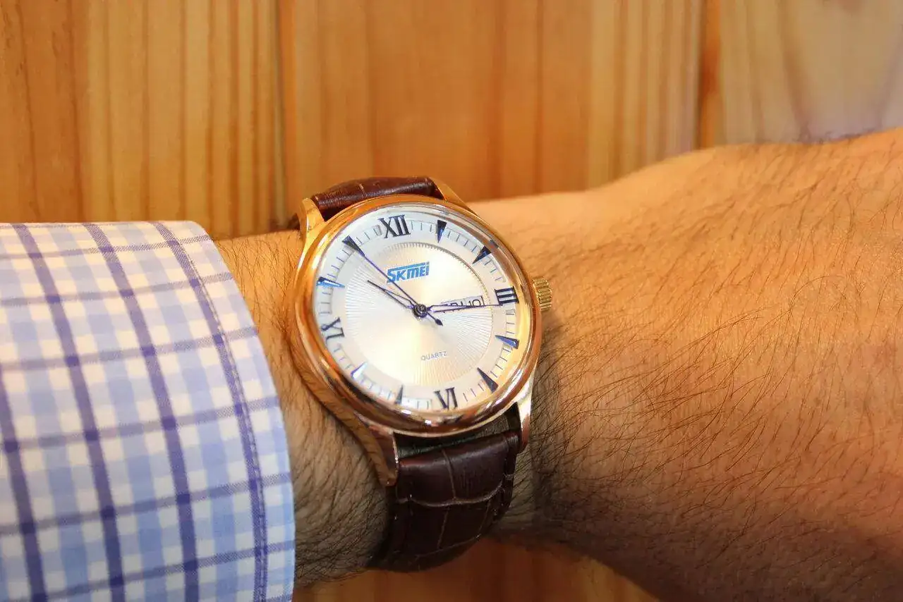 Este reloj de cuarzo del cual no tengo mucha información. Me lo dio mi abuelo un día cualquiera, nunca lo llegué a usar porque no me gustaba pero tampoco quise deshacerme de él. Sin haberlo usado, está desgastadito supongo que por ser de baja calidad. Me da igual no haberlo usado, en la caja se queda por haber sido un regalo.