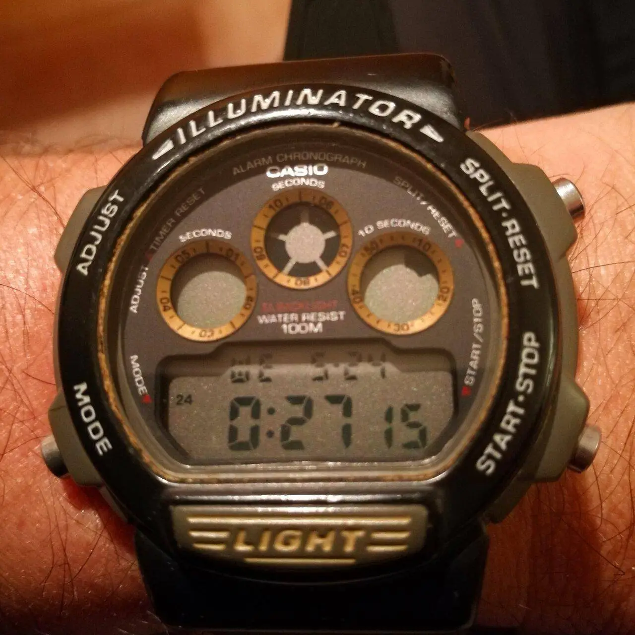 Hace poco decidí gastarme unos eurillos y ponerle una correa baratilla para que al menos pudiera descansar en condiciones en la caja de jubilados, dado que me daba cosa verlo sin correa. Este reloj convivió con el Casio azul mixto y con el que fue su reemplazo como reloj para todo, mi 2º G-Schock.