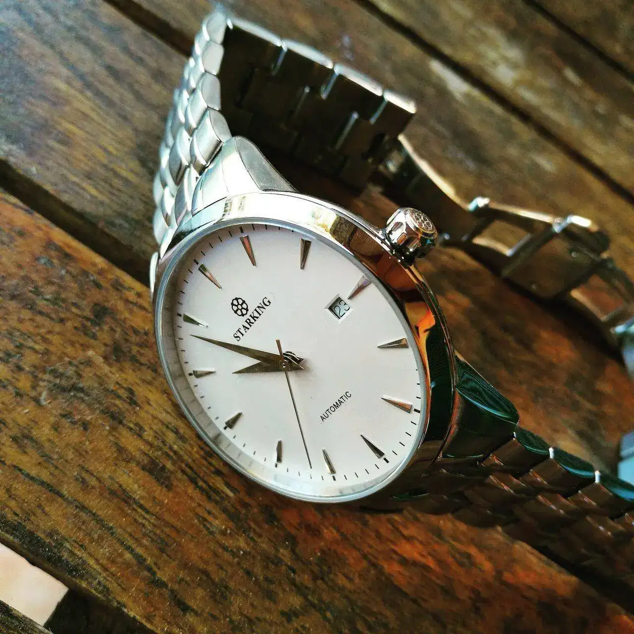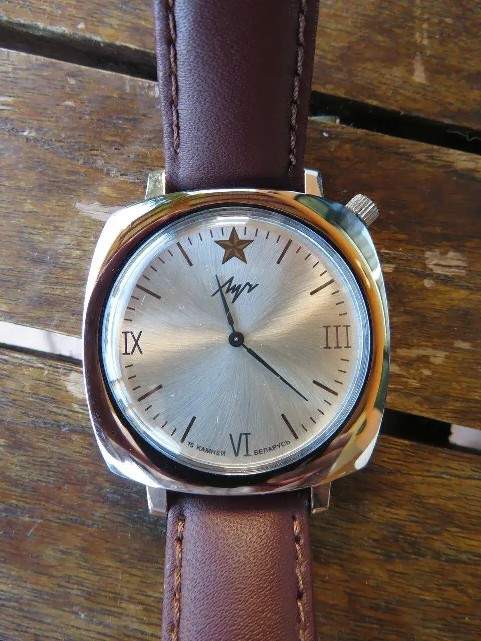 Este no tiene ni marca. Nunca lo he llegado a ver en funcionamiento, ni siquiera he sido capaz de abrirlo. Es un regalo de mi padre, que paseando por un mercado medieval lo vio y me lo cogió porque sabe que me gustan los relojes desde siempre. Ni siquiera comprobó que funcionase, simplemente lo cogió. Tanto mi padre como mi abuelo son de orígenes muy humildes, obreros desde muy jóvenes y tuvieron que dejar el colegio muy jóvenes para trabajar. De ahí que yo no vaya a heredar jamás ningún reloj "de marca" ni nada parecido, pero no me importa. Prefiero quedarme con el gesto, por encima del regalo en sí. Tanto mi abuelo como mi padre sabían que desde siempre me han gustado los relojes y ambos tuvieron el gesto de regalarme uno un día cualquiera, sin necesidad de que fuera mi cumpleaños ni ninguna otra festividad. El gesto y que sean relojes baratija les definen perfectamente y es con ello con lo que me quedo.