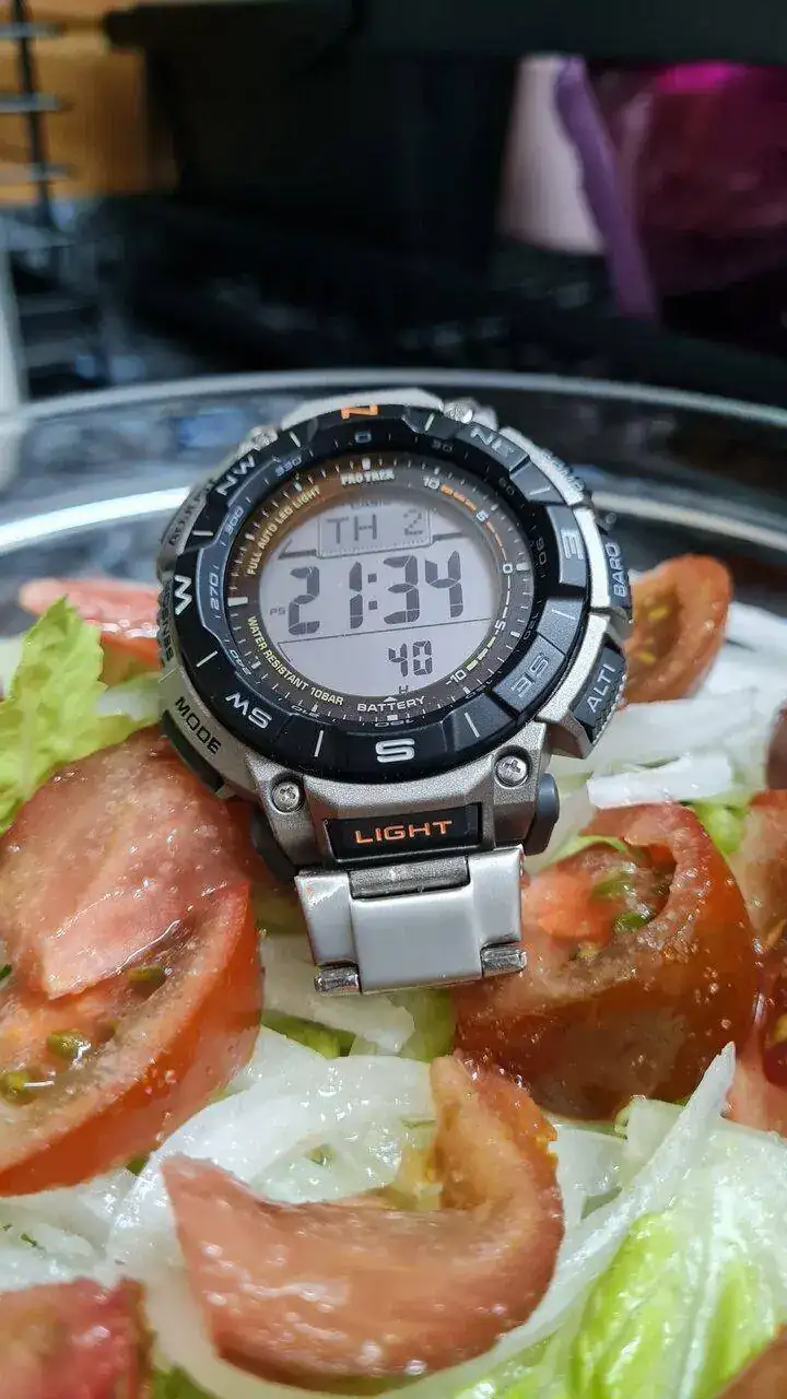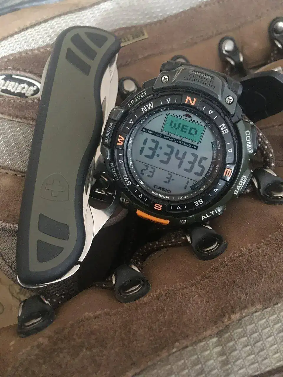 Ahora, el que vaya al campo habitualmente, ni te cuento quien trabaje en algo de montes o naturaleza en general, si está todo el día con su PRO TREK en la muñeca será feliz. Y a mí me va a costar no llevármelo siempre que vaya al campo, pero mis otros Casio también tienen derecho. Sabes, quizá ahora que tengo este PRO TREK que va a ir mucho al campo, esto haga que empiece a usar un poco más algunos de mis Casio a diario. El Casio S001 de 1980, o los Marlin de acero, los W-720, incluso el DW-7100 de 1990 o por supuesto el G-Shock DW-8900/MRG-100 o los 5600 Y 5610 son relojes digitales que debería usar a diario mucho más.