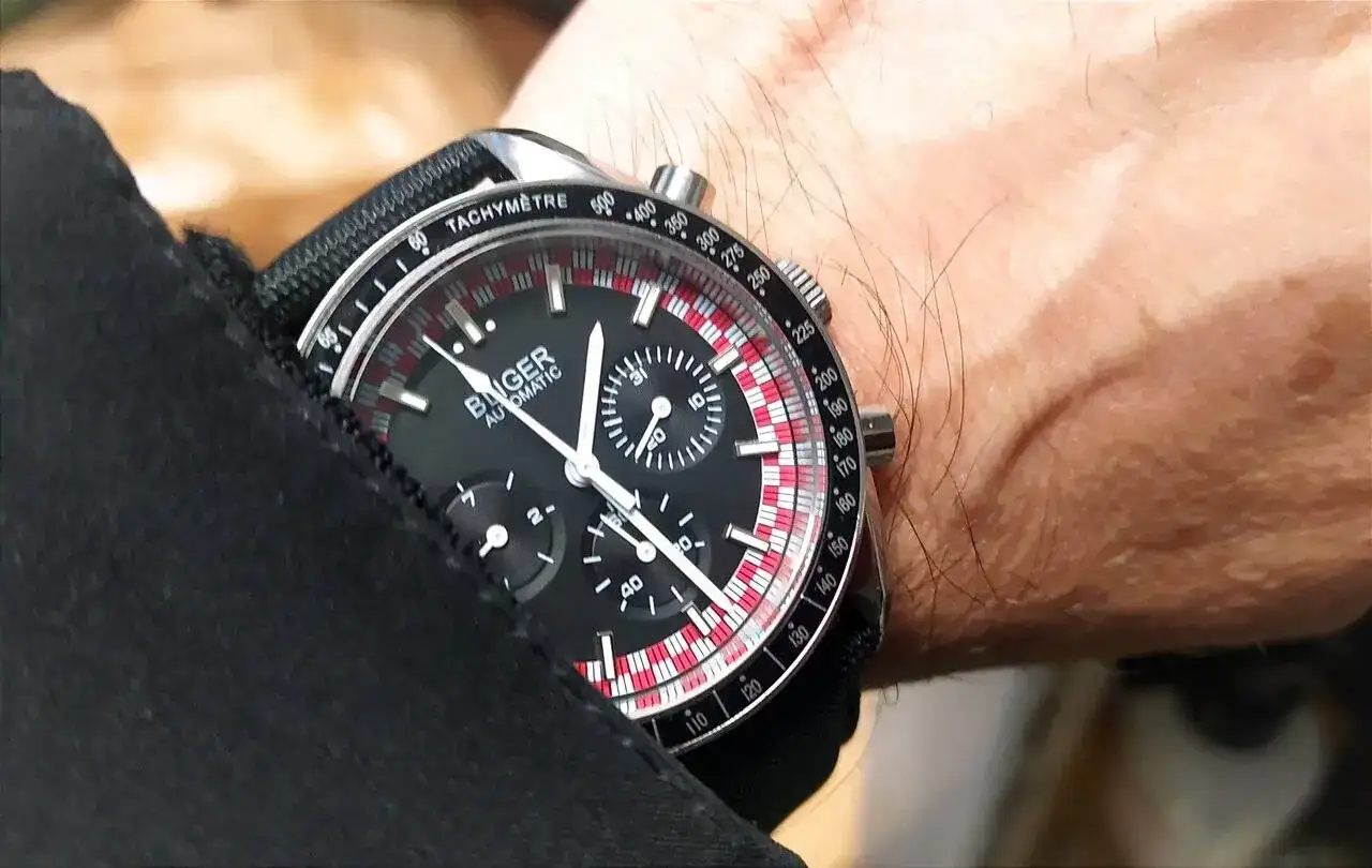 El movimiento segun Bliger es un NN 3836, que realmente es un DG 2813 tuneado para que tenga tres subesferas. Es un falso crono, un subdial es el dia de la semana, el otro el del mes, y a las 6 es una segunda segundera, que acompaña en movimiento a la que deberia ser la trotadora del crono.Hermoso ese Bliger, que calibre trae compañero???