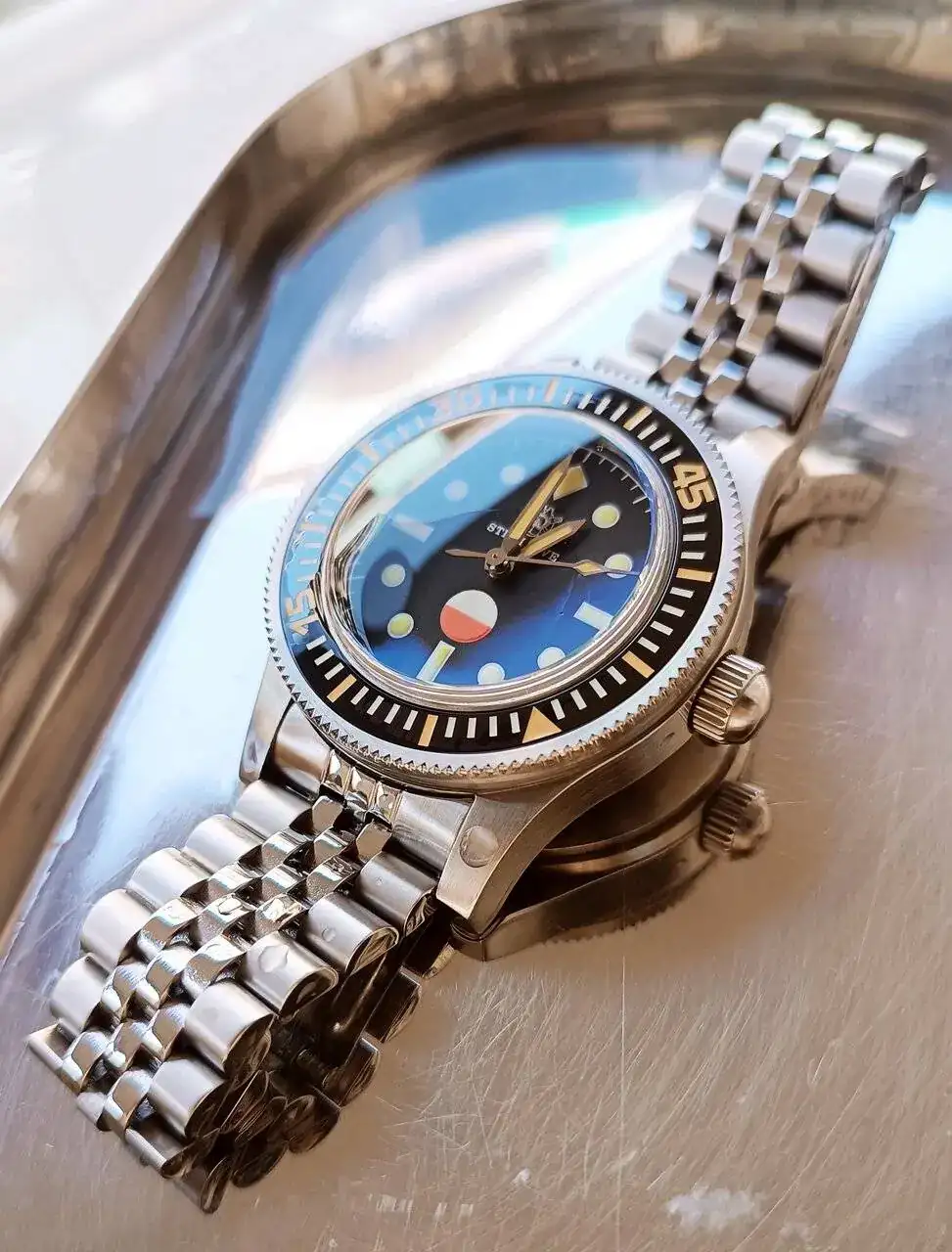 Gracias, compañero. Pues este brazalete me lo regaló un forero, pero prácticamente al mismo tiempo compré uno de Ali (extremadamente barato) para un Seiko y puedo decirte que a excepción del cierre (el de Ali es algo mejor), son iguales. Los endlinks son huecos y gracias a ello he podido adaptarlos a esta caja. Los venden como jubilee para Seiko SKX, haciendo palanca con cuidado puedes abrir los endlinks para ajustarlos lo mejor posible a tu reloj. Es un tipo de armis que te recomiendo encarecidamente. Cualquier duda que te surja, aquí me tienes.Que bonito es el reloj y que fotos le haces.