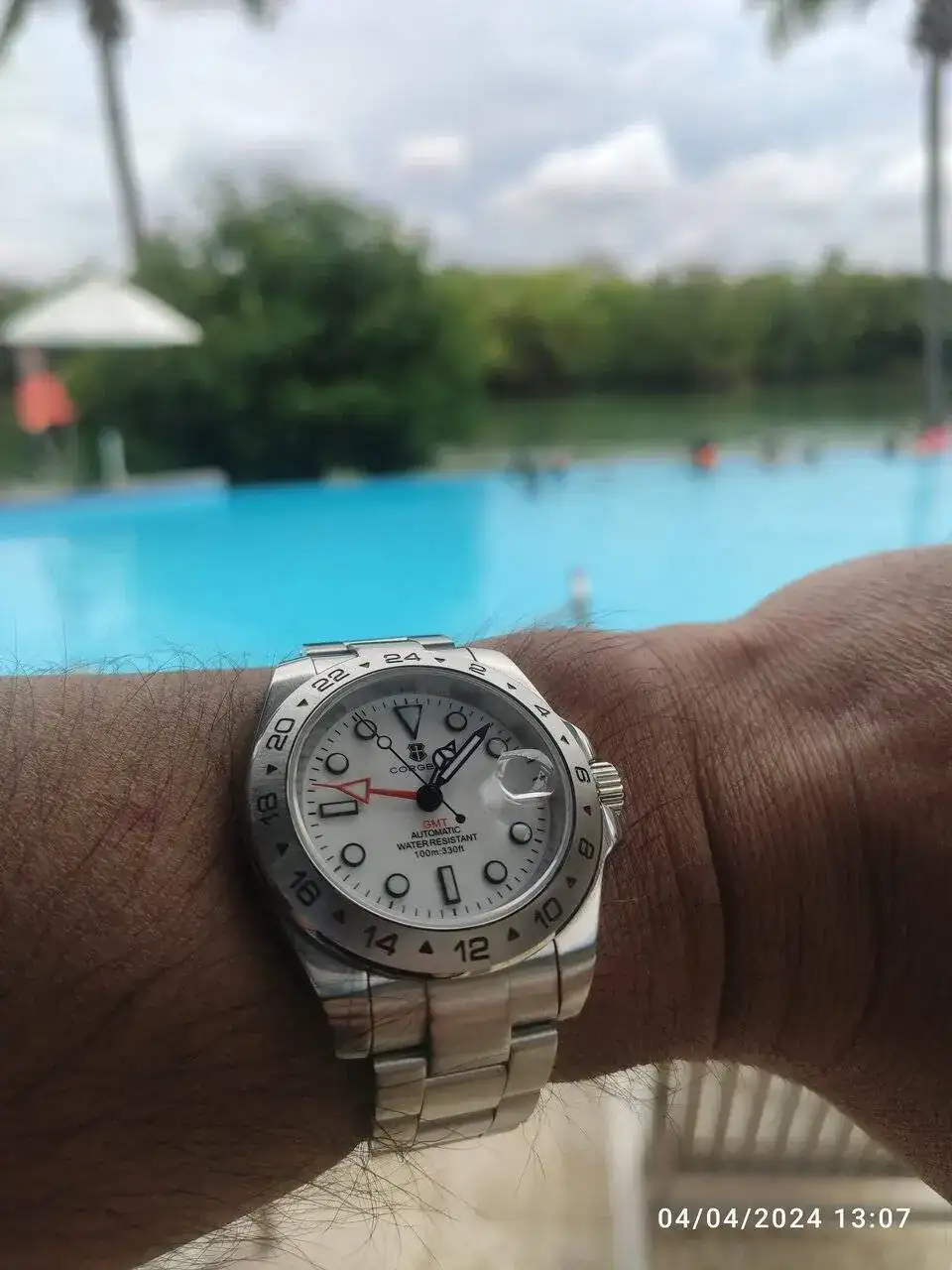Yo hoy llevo uno que comparte ese calibre.Hoy con este en la piscina y aunque es Chino, un Corgeut, con NH34 GMT, con corona y trasera roscada y solamente con una resistencia al agua de 100 metros pues no se salvó de la prueba acuática y ya lleva acompañándome en estas vacaciones varios días, y como dicen por ahí, sin miedo al éxito jejeje...
