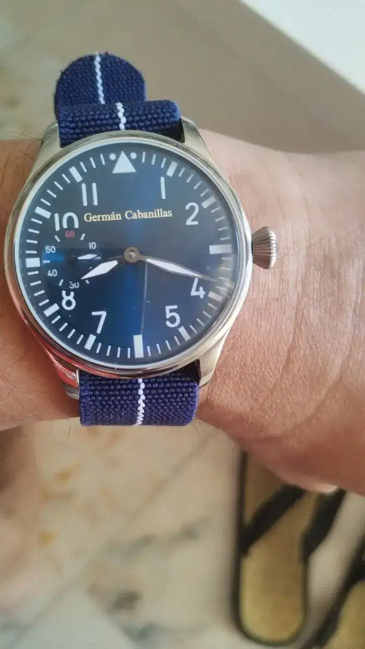 Quedo excelente y súper legible: adiós a los problemas de la presbicia.Hoy, uno de mis Flieguers con calibre 6497 y cabanillazeado en la propia fábrica.