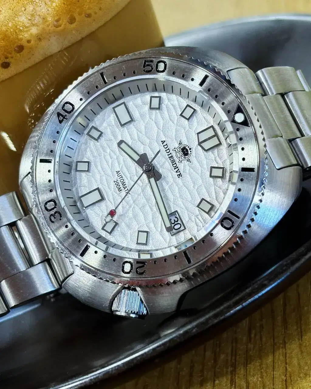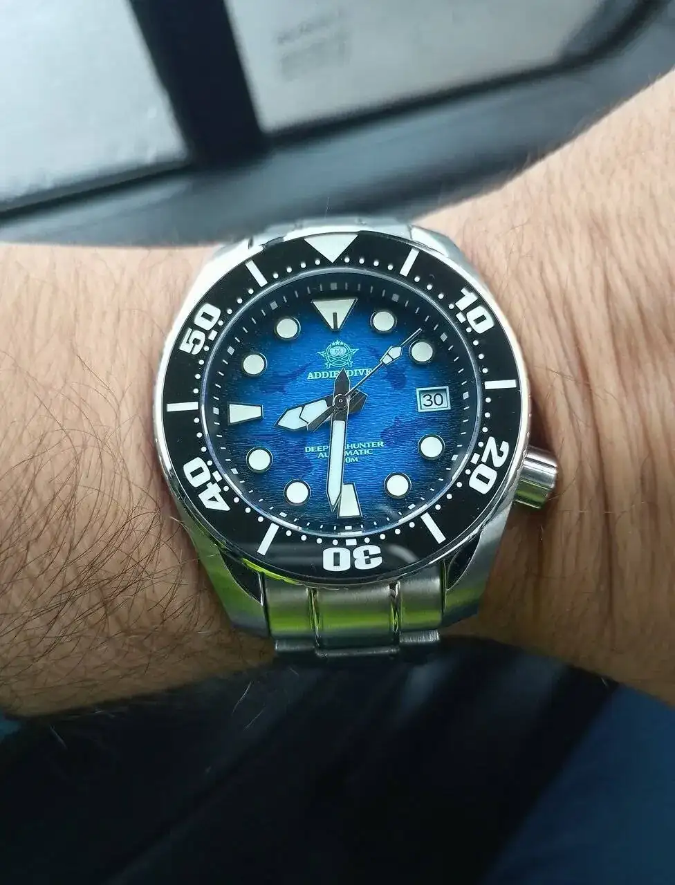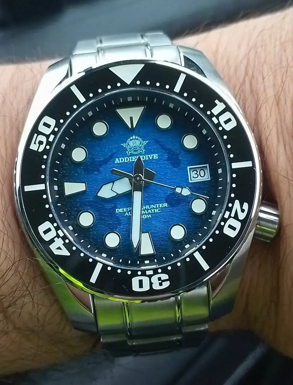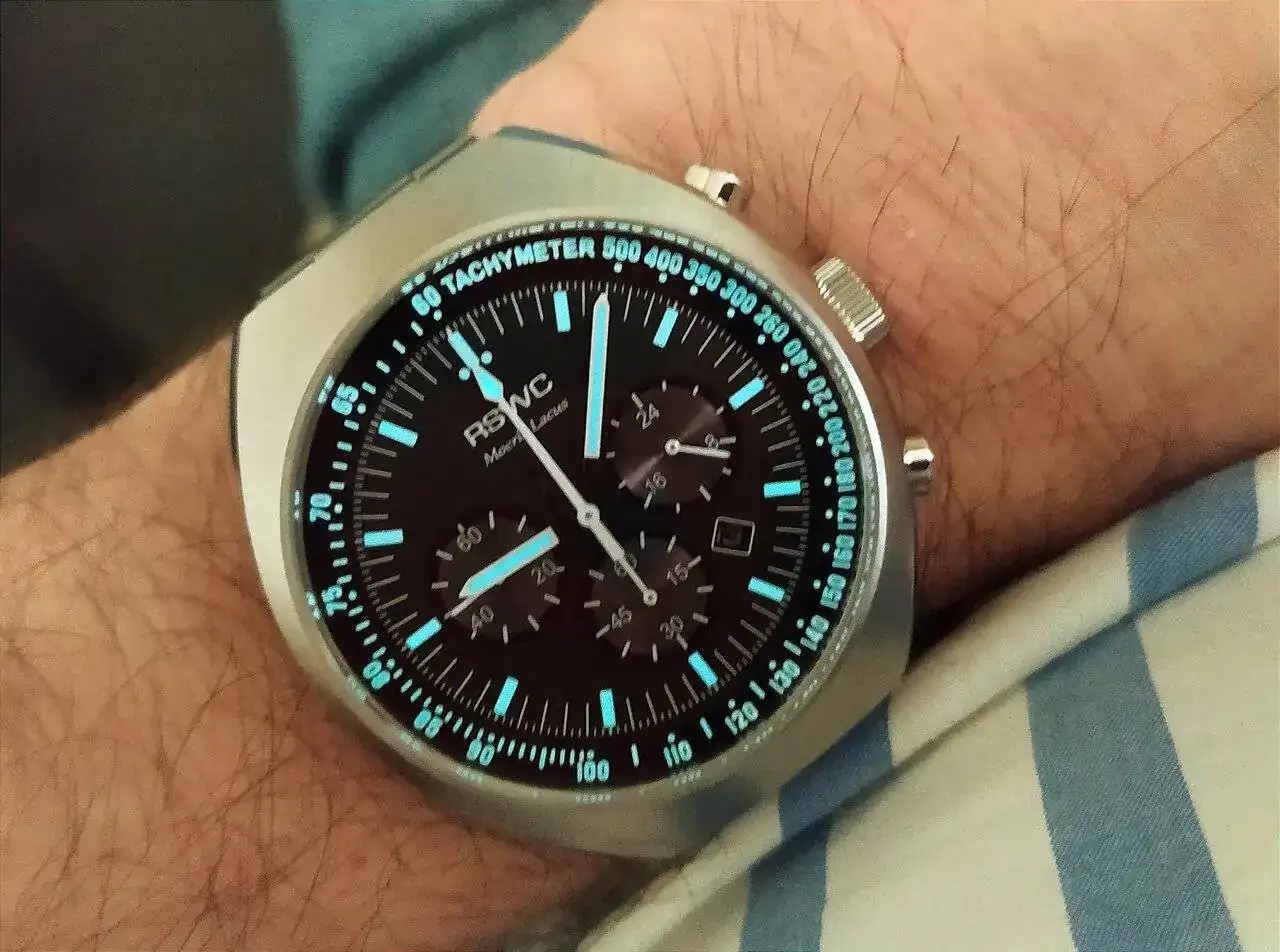 Mi última incorporación. Me lo ha dado mi padre porque a él se le paraba por falta de actividad. Cuando se lo regalé lo miré muy por encima. Ahora que he podido mirarlo más en detalle me ratifico en la sorprendente calidad que dan este tipo de relojes, sobre todo teniendo en cuenta su precio y que, en su momento, pasó el trámite aduanero sin problemas y sin coste. Por 57€ no se puede pedir más.