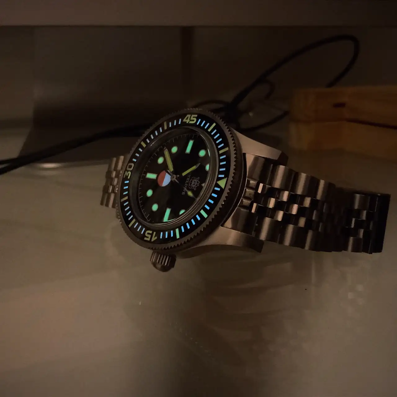 Hoy uno de arrejunte: Calibre Seiko nh35 de un invicta, esfera Cabanillazeada desde China, caja y agujas chinas.