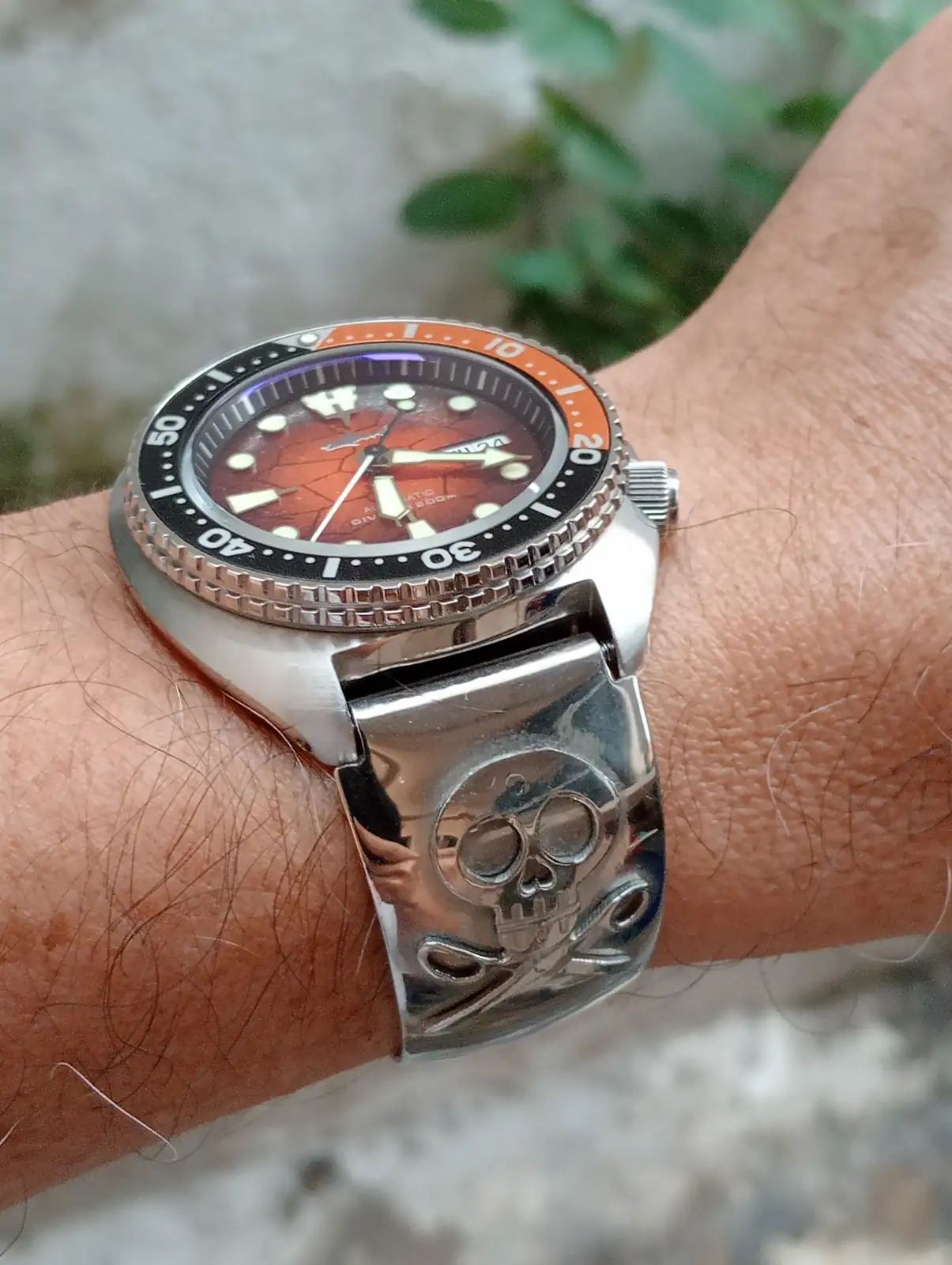 Tremendo el brazalete y la historia. Esos perforados me encantan también, recientemente ví un Tissot a la venta acá en Marketplace que me tentó justamente xq tenía ese brazalete, lamento que se me haya escapado.Gracias compañero, me lo hizo un talentoso artesano filipino, al estilo de los brazaletes que los soldados yanquis destacados en la base naval de Subic Bay en Filipinas se mandaban a hacer con artesanos locales.